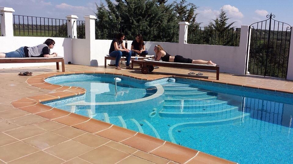 Gelukkig was het prachtig weer en de temperatuur was zeker rond de 23 graden. Onze groep was in tweeën verdeeld de zieken in bed en de zonneaanbidders op het bedje aan het zwembad.