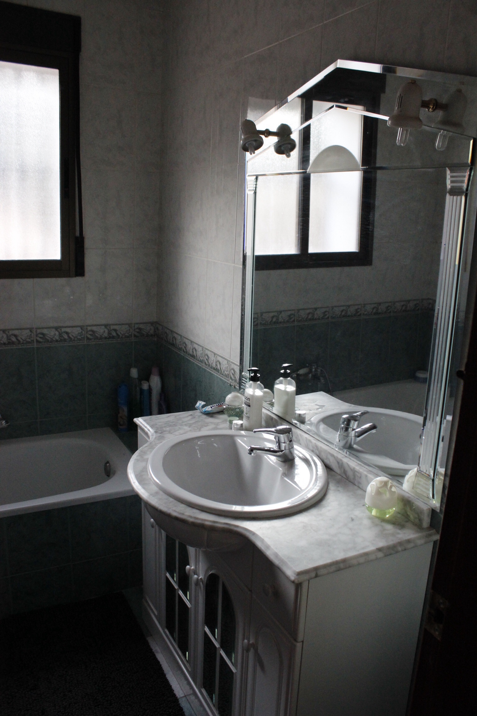 De andere badkamer op de beneden vloer die bestemd is voor de twee slaapkamers boven is erg groot en best wel te doen op het moment maar deze willen we toch gaan aanpakken, bad eruit en een mooie inloopdouche maken, ook willen we geen bidet meer en we willen een nieuwe wastafel met spiegel en een nieuwe vloer en wandtegels.