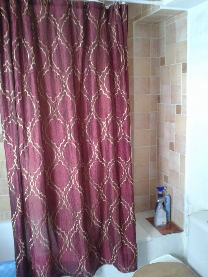 De badkamer die tussen deze kamers in ligt, ziet er op zich wel schattig uit alleen die wil ik toch helemaal gaan aanpakken, alles eruit en een nieuwe wastafel, douche en tegels.
