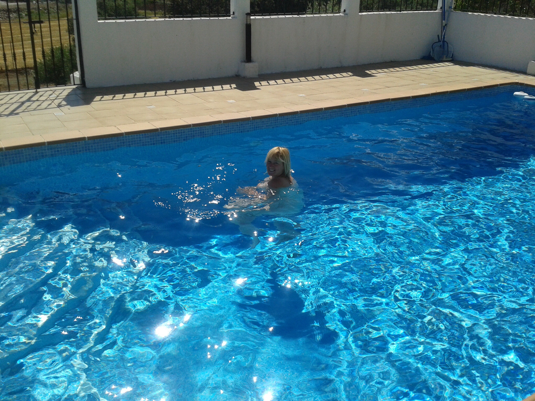 Ik had wat opstart problemen, nog geen zin om iets te doen. Gewoon even lekker op de ligstoel bij het zwembad gaan liggen. De zon scheen behoorlijk, ik had het op een gegeven moment zo warm, dat de kleren uitgingen en ik gewoon in het zwembad sprong. Zalig, in het begin even koud maar daarna lekker een aantal baantjes gezwommen.