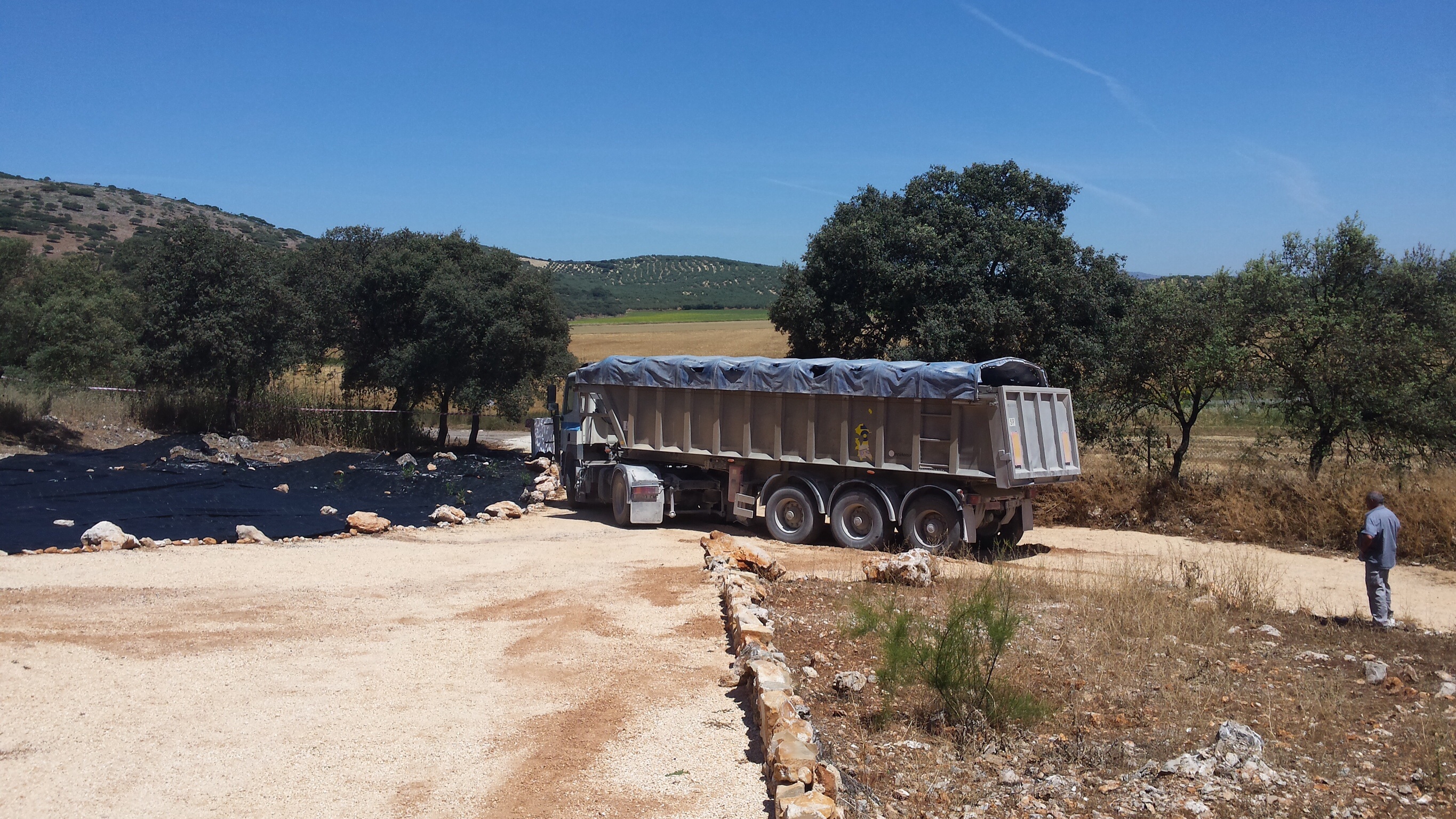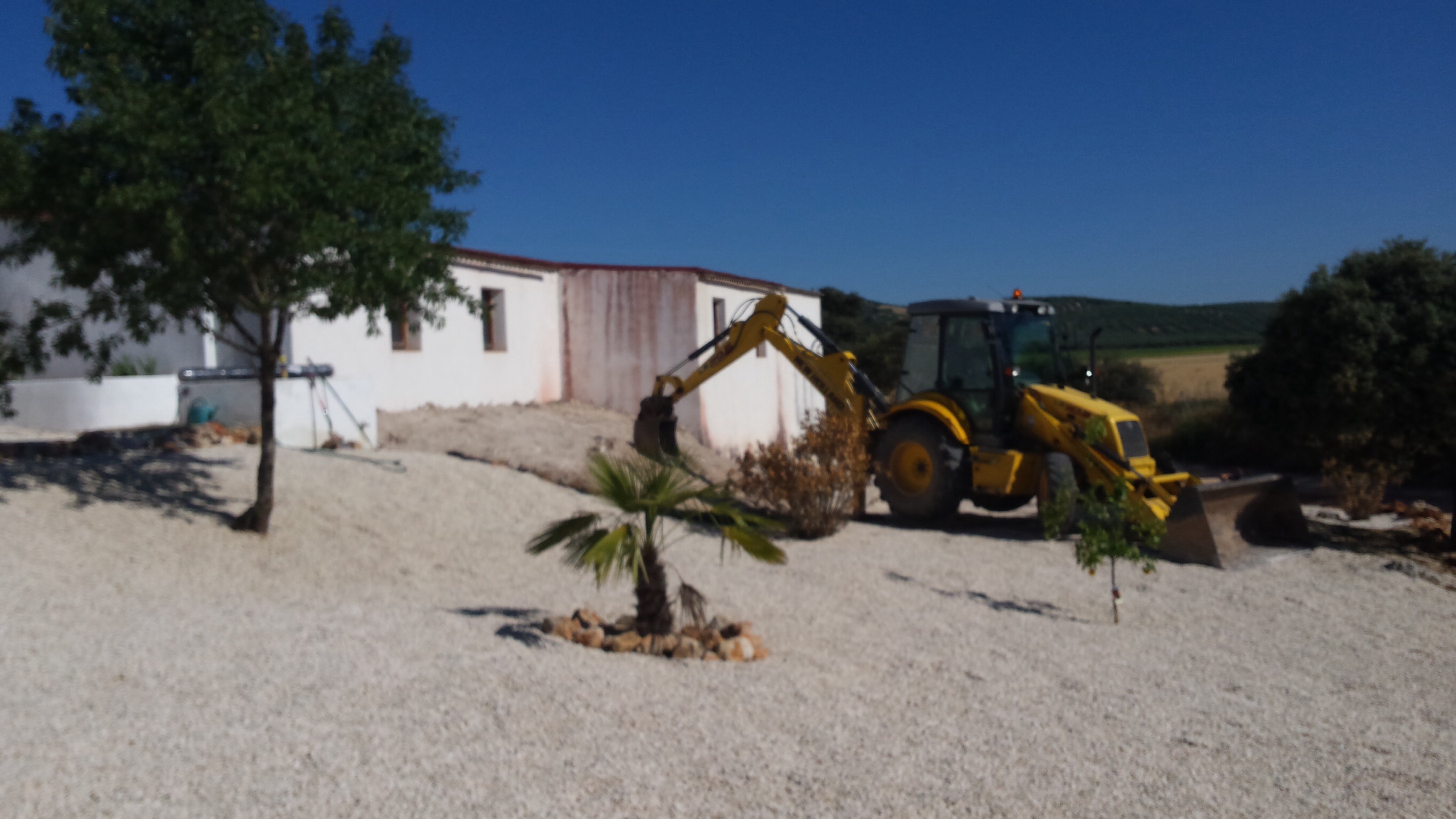 We waren nu een week in Spanje maar eigenlijk elke dag waren we bezig geweest met dingetjes. Nu mijn ouders er zijn hadden we besloten even lekker te relaxen samen. De Engelsen waren wel voor ons aan het werk. Twee vrachtauto’s vol stortten een lading grind en de grote shovel moest deze op de juiste plek brengen en daar moest het dan uitgeharkt worden. Wat zal het weer opknappen.