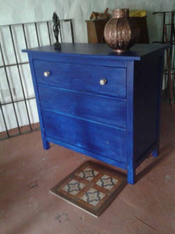 Gelukkig is mijn moeder nu weer blij, ze stuurde een foto van het kastje wat ze opgeknapt heeft. De tegel waar deze op komt te staan ligt eronder zodat we kunnen zien hoe mooi dat zal gaan staan. Mooi hoor mam. De ontbrekende knopjes heb ik bij Gaaf gekocht en komen jullie kant op.