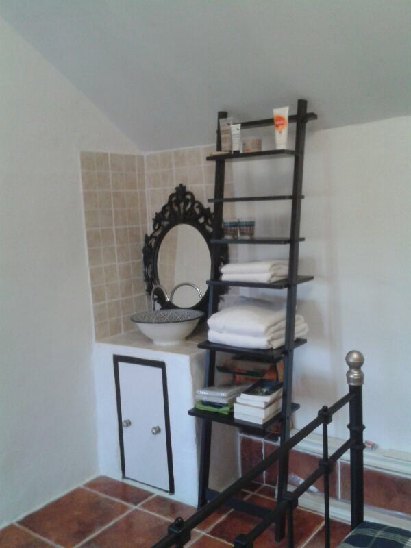 De kleine zitkamer die voor de slaapkamer ligt is nu getegelt en de wanden zijn gladgemaakt en geschilderd. Daar moeten nog de nodige spulletjes in komen en de deuren moeten nog geschilderd maar wat ziet het er al mooi uit zeg.