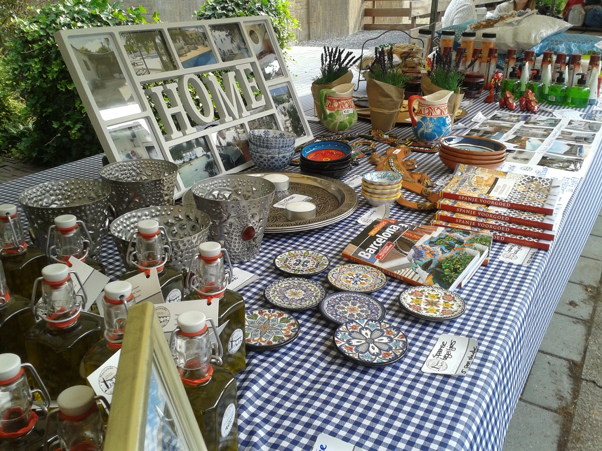 Oh jee nu moet ik nog gaan bedenken wat er allemaal op mijn kraampje verkocht moest gaan worden, wat is nu typisch Spaans en wat willen de mensen graag hebben. In maart was ik samen met mijn dochter naar Spanje gereden met de auto, ideaal om terug die auto vol te stoppen met allemaal Spaanse artikelen.