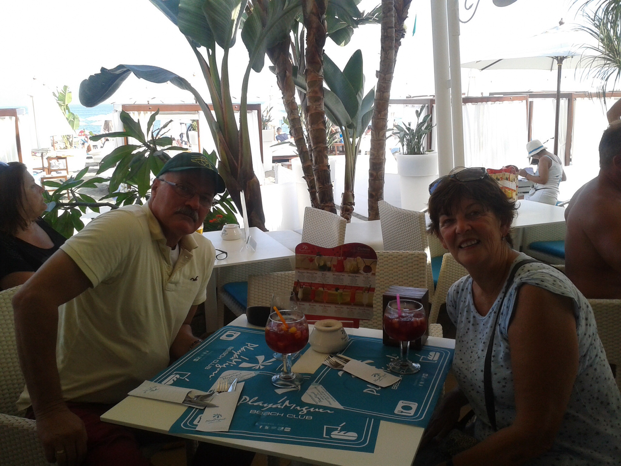 Bij het hipste plekje wat we konden vinden ploften we neer, restaurant playa Miquel. Heerlijk een tinto de verano drinken met op de achtergrond een dj aan het draaien. Een prima prijs kwaliteit voor het eten en een enorm gezellig sfeertje.