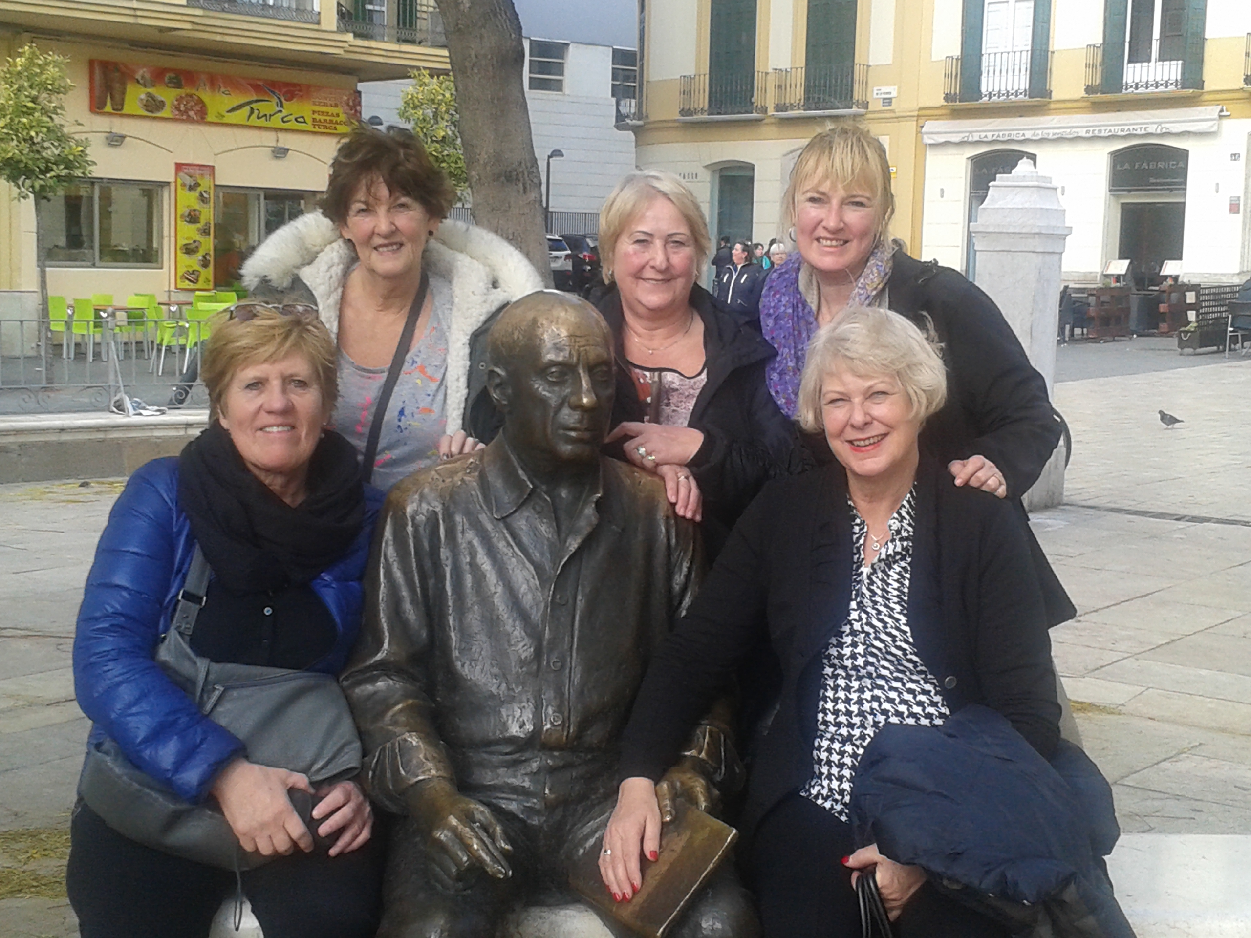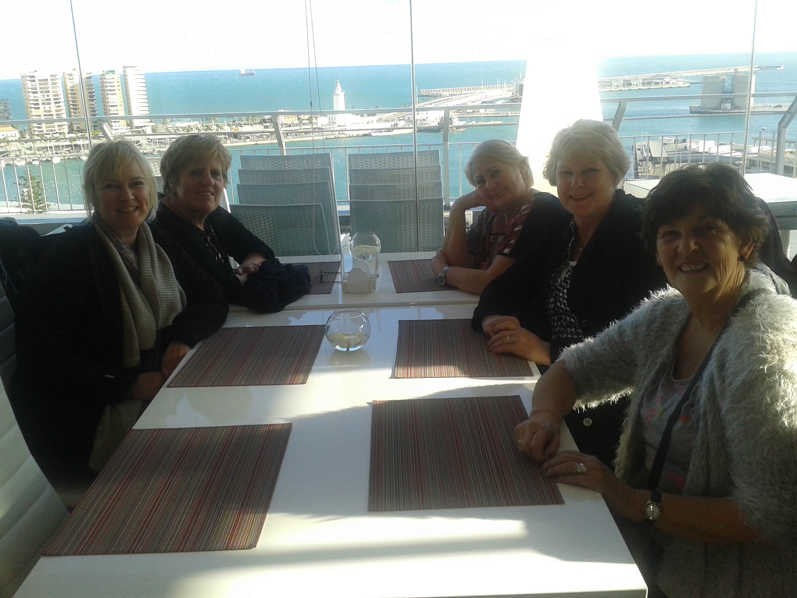 Wat een leuke stad zeiden de dames, na de prachtige kathedraal gezien te hebben, te hebben geluncht bij El Pimpi en natuurlijk even met Picasso op de foto geweest te zijn gingen naar het dakterras van een hotel aan de haven.