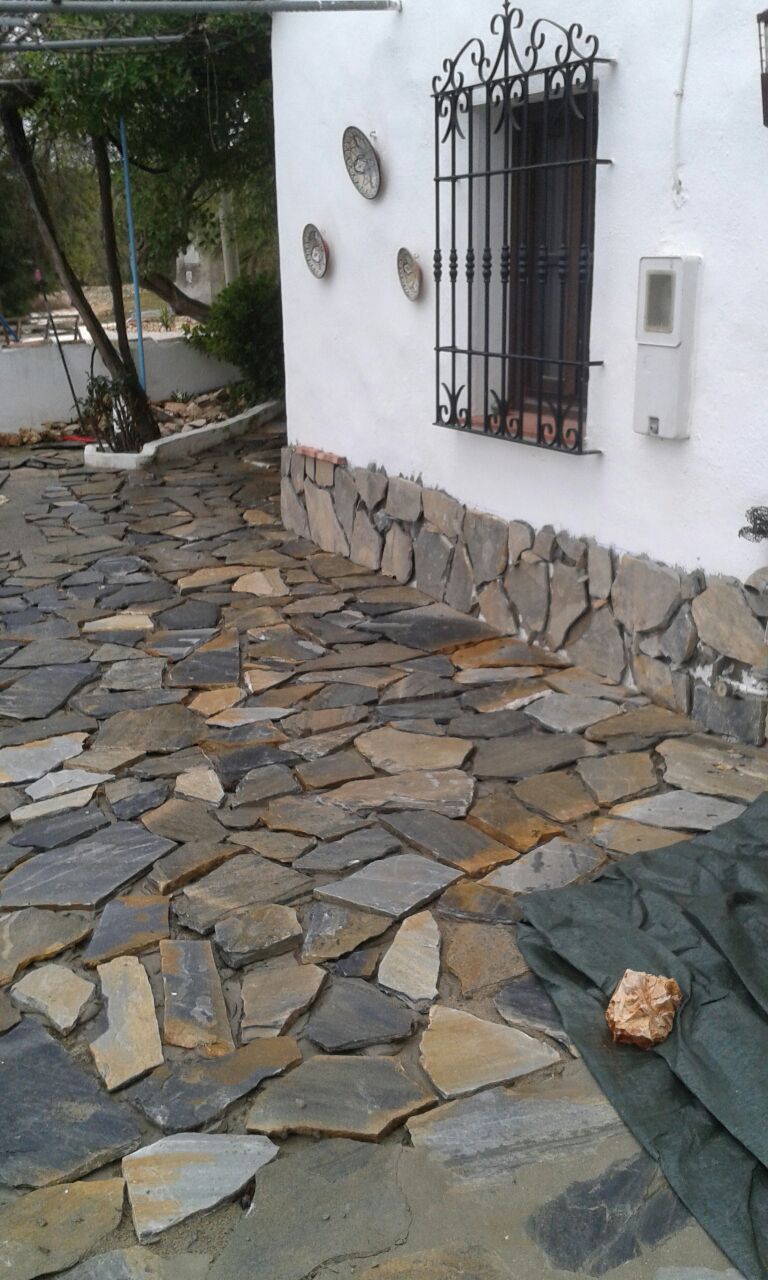 Werk uitbesteed aan andere mensen, terras met flagstones wordt prachtig, gelukkig toch een licht puntje. Het schiet nu aardig op, moet nog gevoegd.