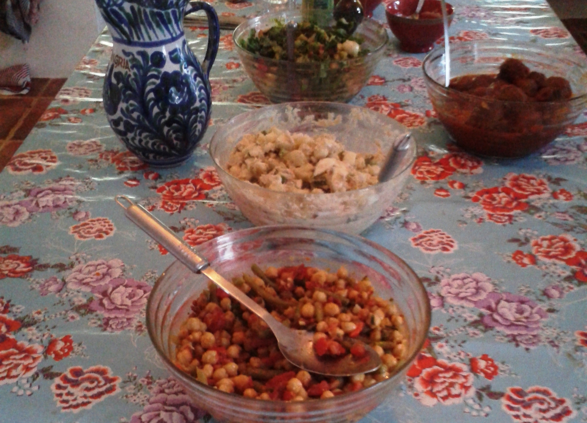 Vanavond stond er een Spaansbuffet op het menu, dus de binnentafel werd naar buitengebracht. Terwijl de mannen de aardappels gingen schillen, jaja goed geregeld hé, ging ik nog meer gasten halen. Zij kwamen aan op het supermoderne treinsation Santa Ana in Antequera, een half uurtje bij ons huis vandaan. Ze hadden rondgereisd en kwamen vanaf Cordoba.
