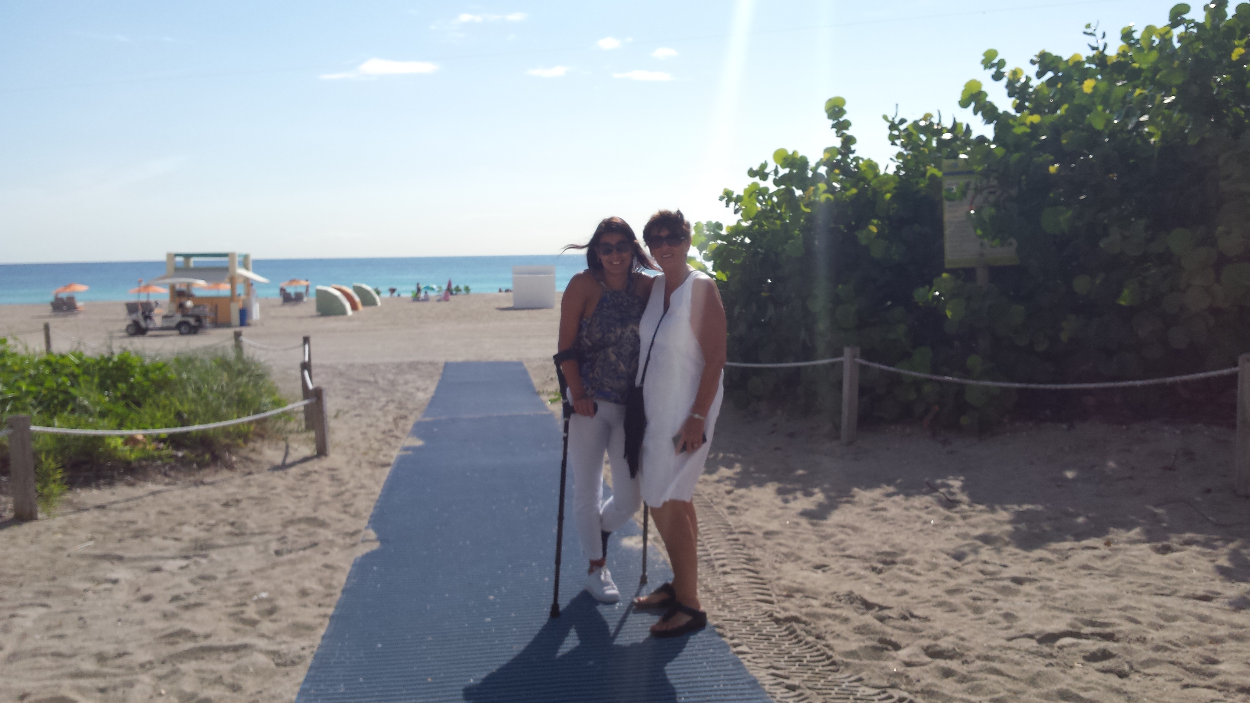 In Miami was het enorm warm, 34 graden, wat een overgang. We moesten er beide aan wennen. Natuurlijk is het voor zo’n jonge meid niet leuk om in het hippe Miami in de rolstoel geduwt te worden door je moeder en ook niet naar het strand te kunnen en niet te kunnen zwemmen. Het hotel waar we zaten was helemaal gericht op strandgangers en had ook geen plekje om even een boekje te lezen in de schaduw.