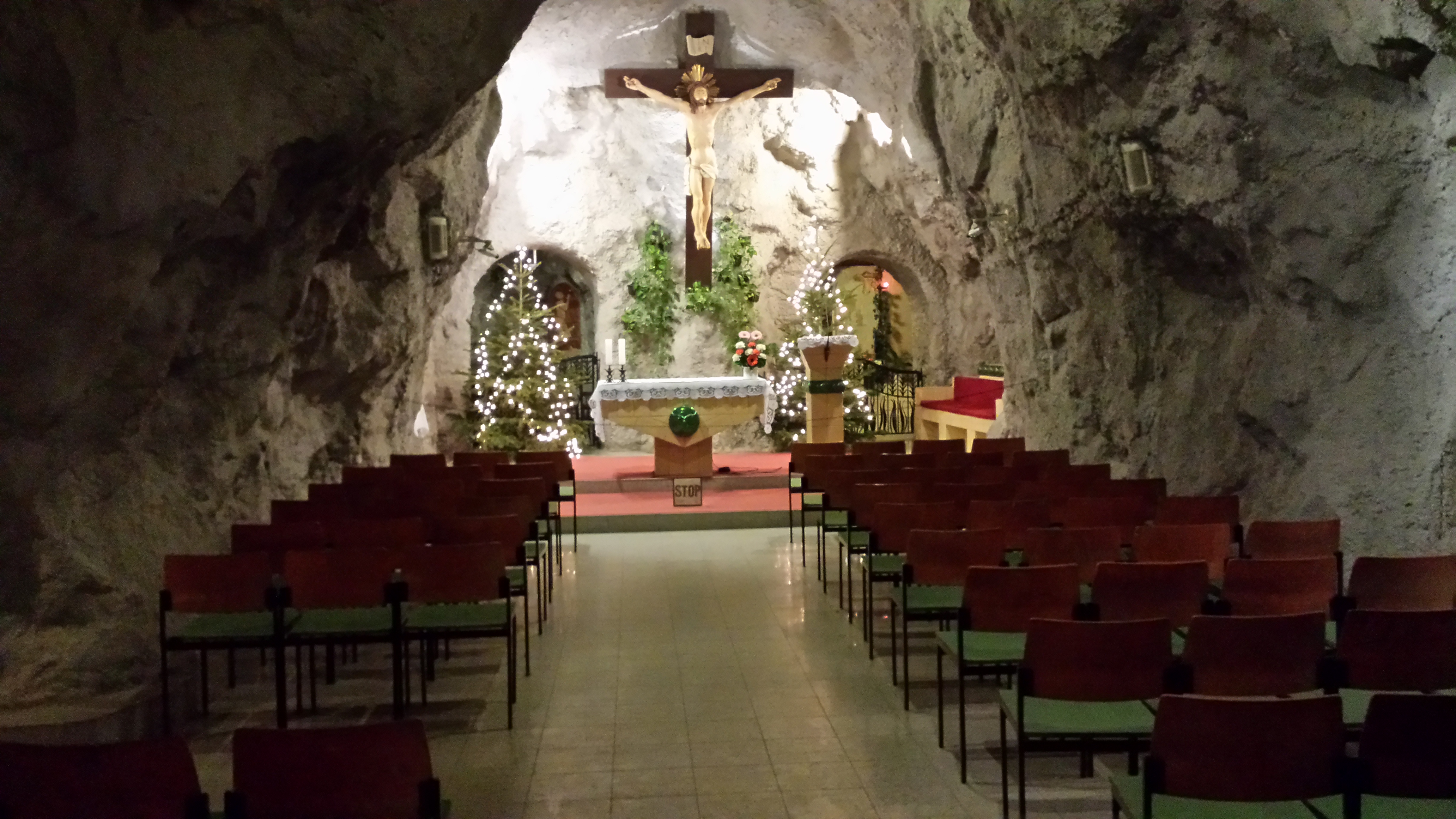 Voordat we de brug weer overliepen waren er nog 2 dingen die we wilden bekijken namelijk eerst de grotkerk.20160125_143337 Deze grotwoning was eerst van een kluizenaar die met het thermale geneeskrachtige water zieken genas, later werd het een kerk en deze wordt nog steeds gebruikt.20160125_143526