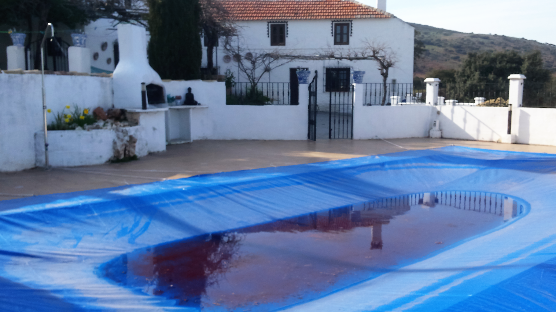 Nu de test of het afdoende is geweest. Het was best een klus om het zeil er weer vanaf te halen, er was water op het zeil blijven liggen en dit moest er met de dompelpomp eerst zoveel mogelijk afgehaald worden, daarna de punten naar achter trekken en het laatste restje water er met het emmertje vanaf halen, daarna kon het zeil eraf. Pff gelukt, het water was niet al te vies onder het zeil. Wel moest Lesley een paar uur de tuinslang aan doen om het water aan te vullen en nog even een paar uurtjes de tijd nemen om het zwembad te stofzuigen. Het zwembad is nu weer klaar voor onze gasten. Nog wel een beetje te fris deze tijd van het jaar, maar voor de Wim Hof’s onder ons misschien juist wel perfect.