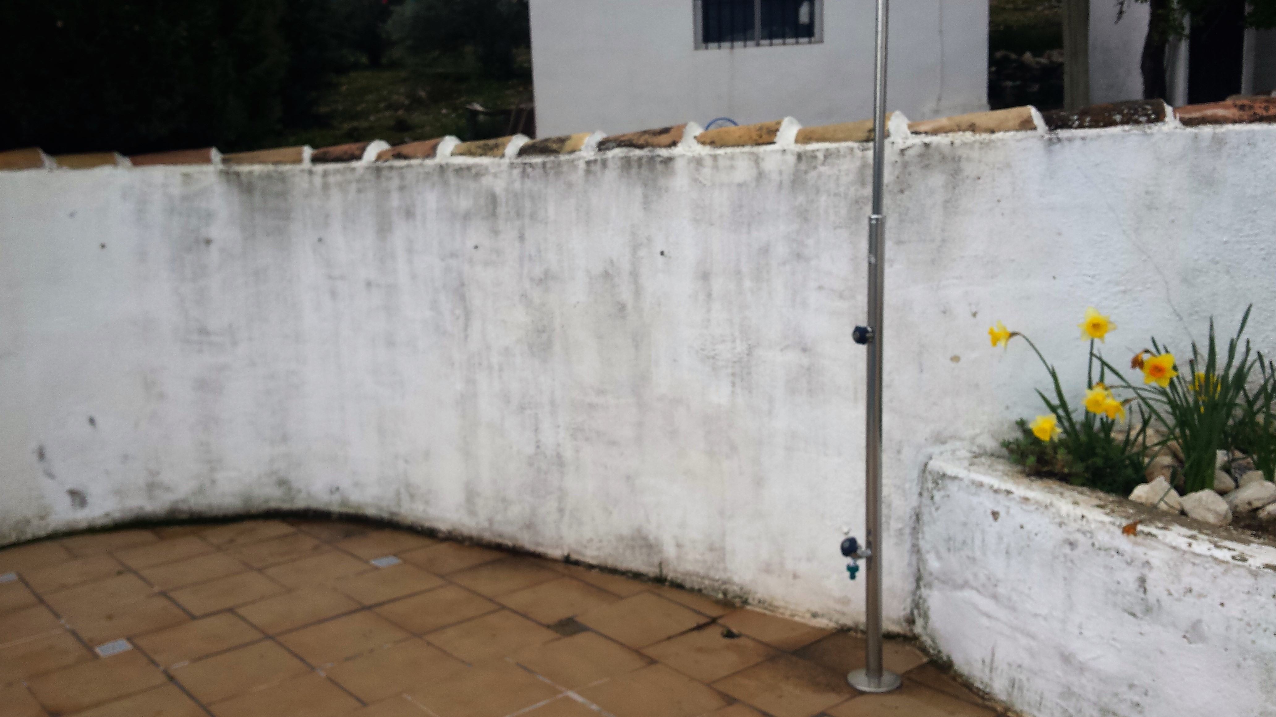 Rondom het zwembad heb ik wel 5x moeten dweilen om het schoon te krijgen het zijn best bewerkelijke tegels. De muurtjes rondom waren behoorlijk vies geworden.