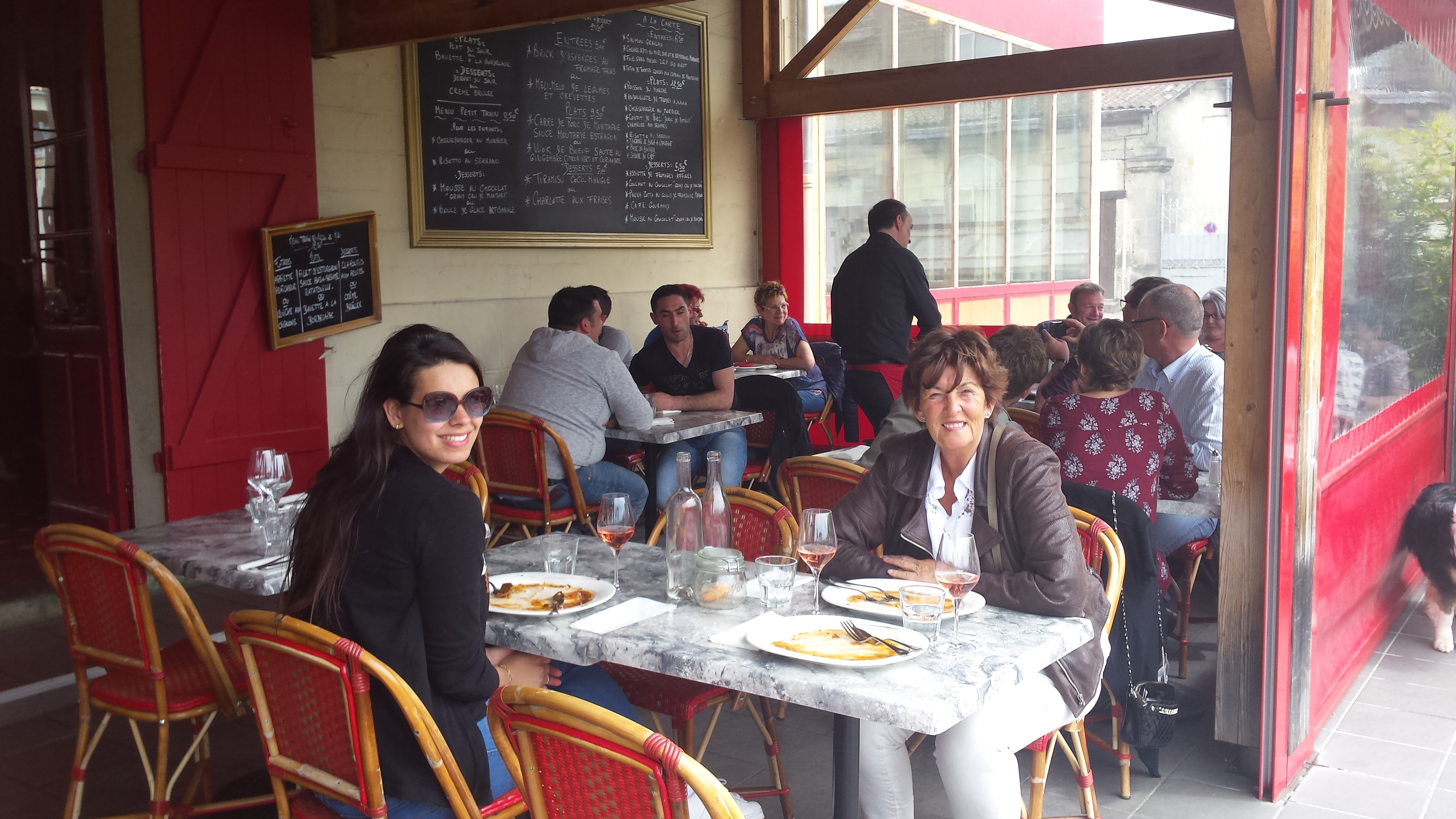 Als tip kregen we te horen dat bij cafe de La Gare in St André de Cubzac, een dorpje verderop, een heerlijke lunch geserveerd werd dus wij daar naar toe. Het was behoorlijk druk maar gelukkig konden we nog een tafeltje bemachtigen.