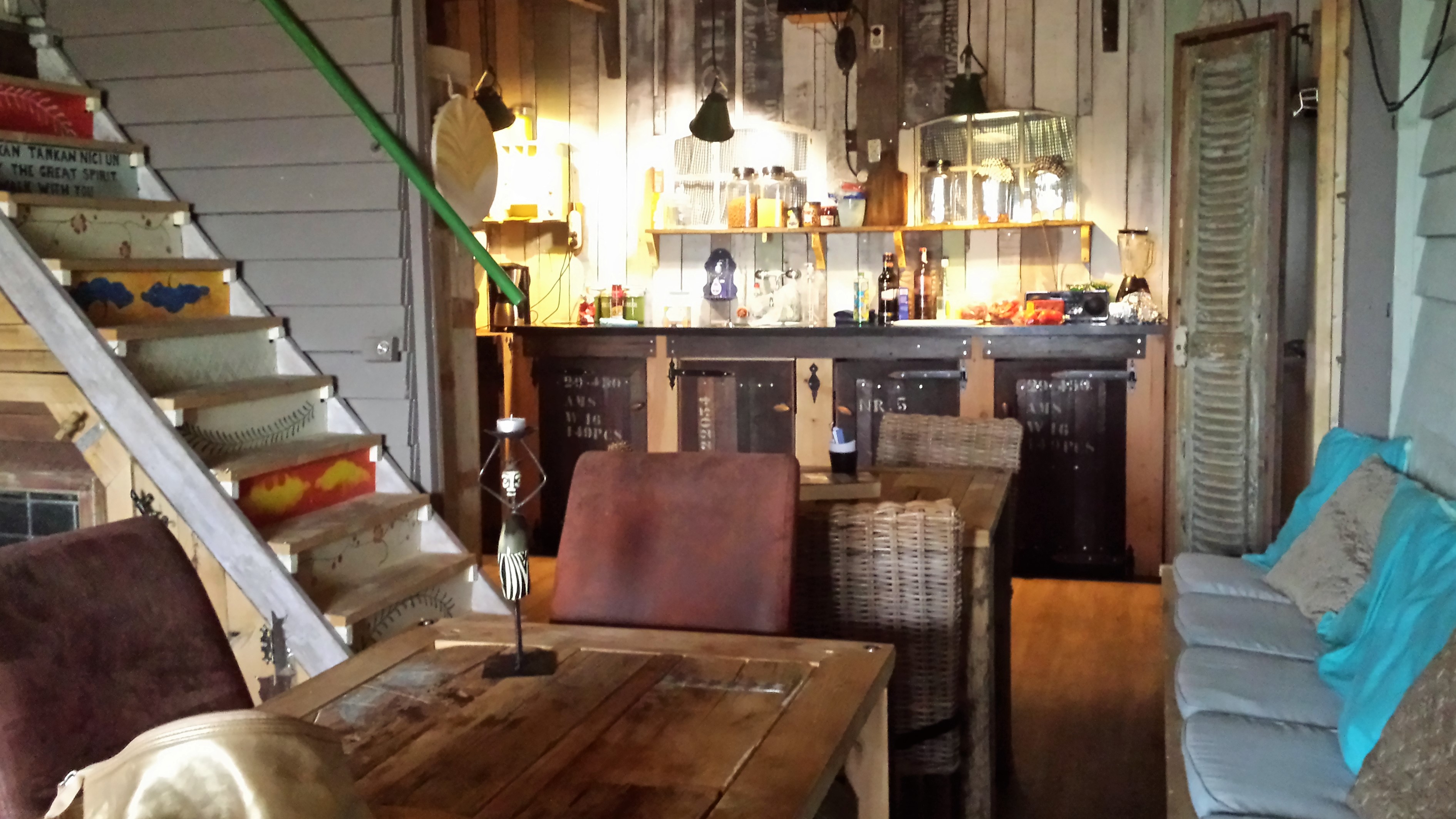 De locatie was heel bijzonder, alles van hout gemaakt door een excentrieke eigenaar, leuk voor de kids waren ook de pipo wagens.
