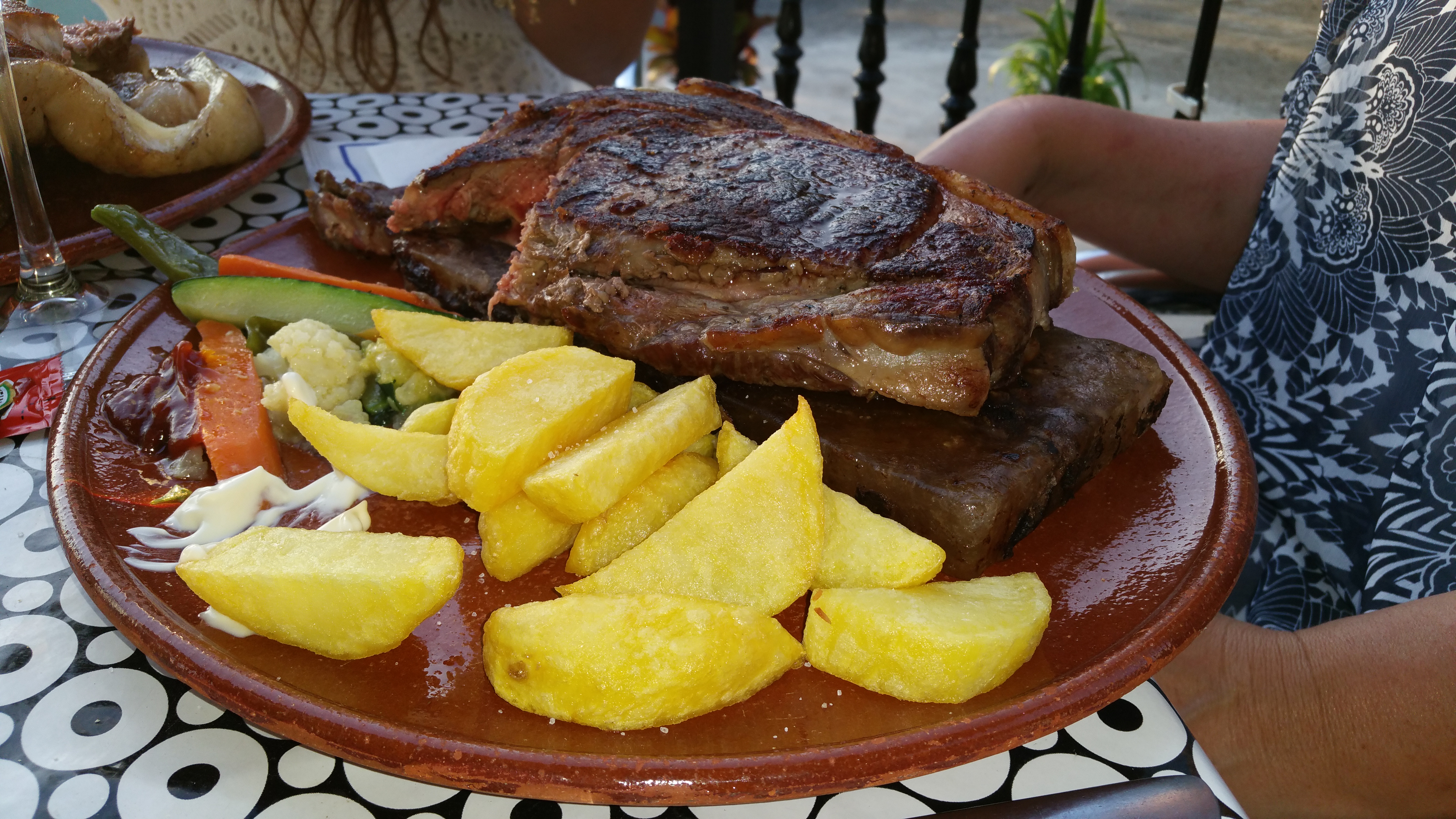 S’avonds zijn we een grote steak bij Pajaritos gaan eten, op een zoutblok, hmm, een heerlijke smaak sensatie voor slechts €14.