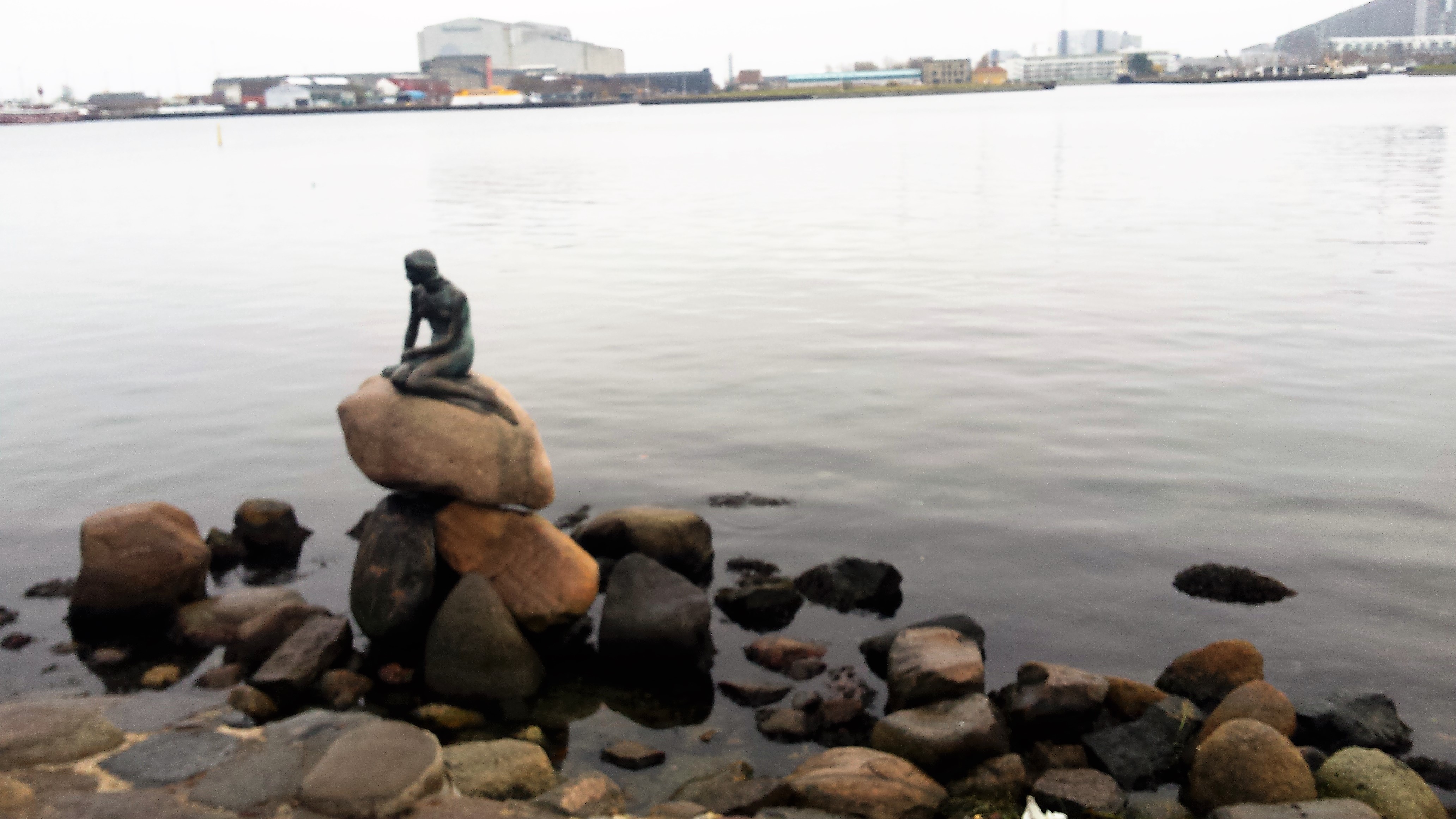 Het was frisjes, net onder nul, maar heerlijk om even te wandelen. Het is een leuke niet te drukke stad. Er wonen ongeveer een half miljoen mensen in de stad en in de rest van het land nog eens 5 miljoen. We zijn natuurlijk bij de kleine zeemeermin wezen kijken, één van de bekendste monumenten in de stad, een mythisch wezen van half vrouw half vis.