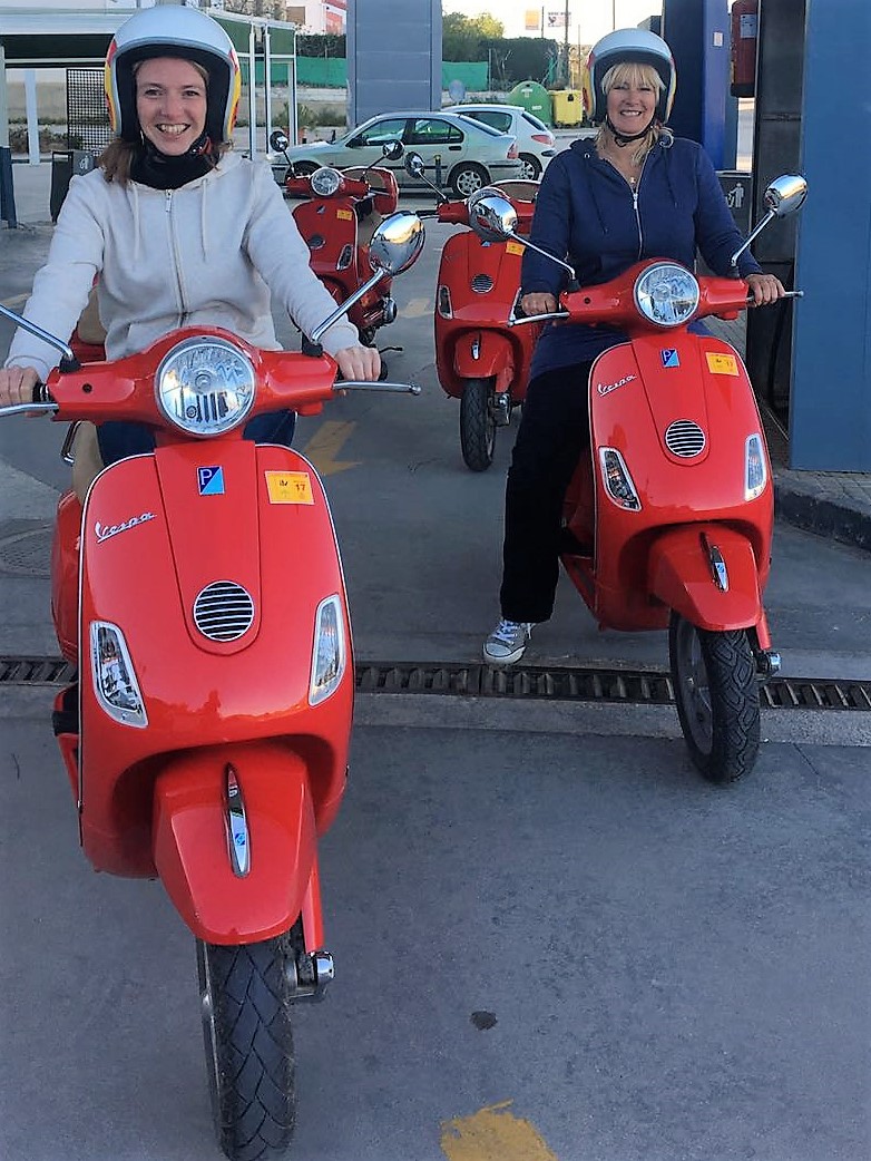 Jeemie, ik had er geen idee van dat die scooters zo zwaar waren. Bijna allemaal hadden we zeer weinig ervaring met brommer of scooter rijden dus dat was best even wennen. Ik kwam erachter dat je voor een 125 cc in Nederland zelfs een motorrijbewijs A1 nodig hebt, hier in Spanje niet!