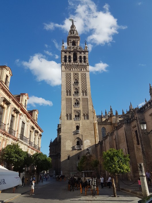 We deden nog een laatste drankje op een terras naast de Kathedraal met uitzicht op de Giralda toren.