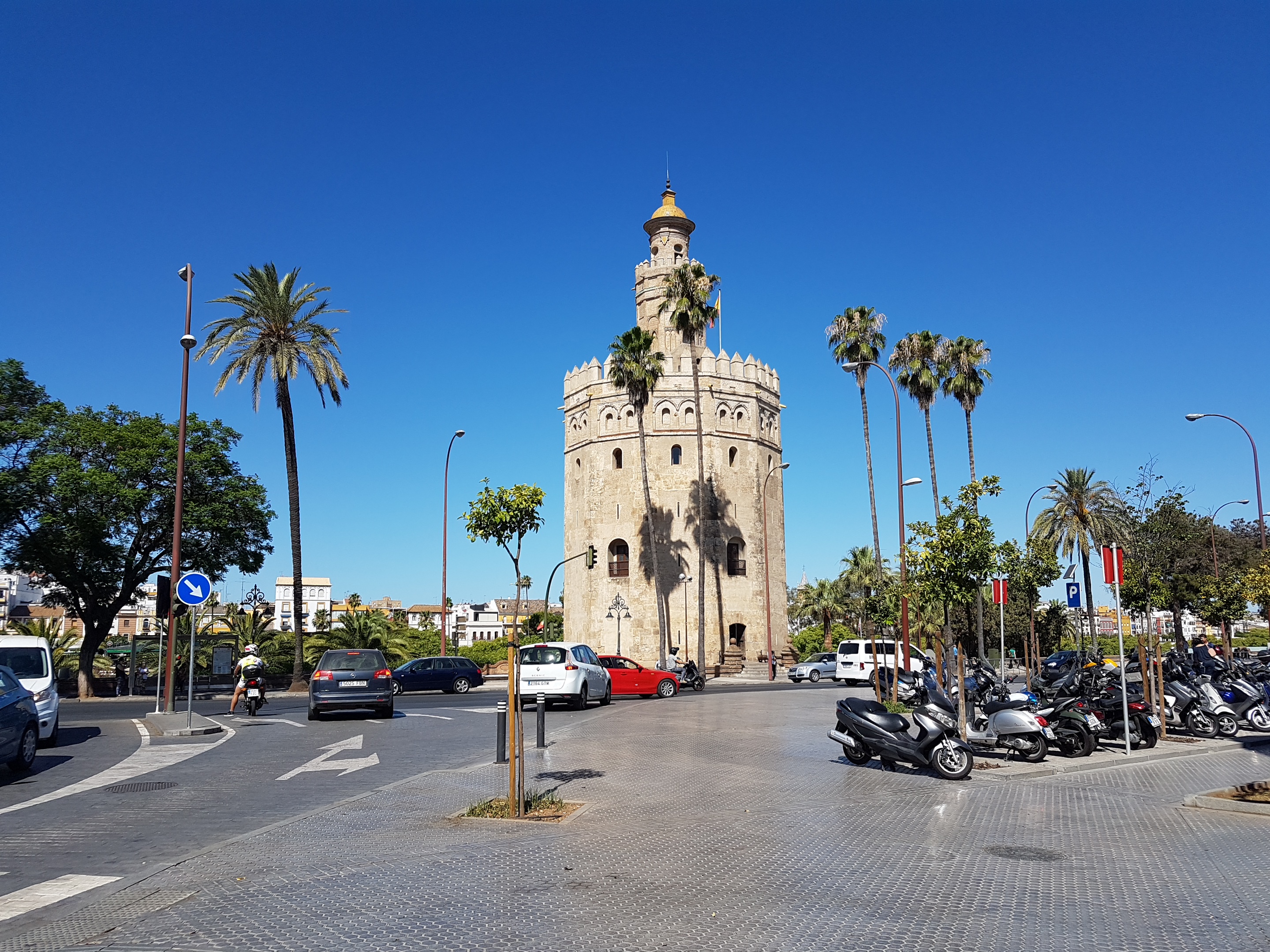 Na een goed ontbijt besloten we nog even terug te gaan naar de stad om de gouden toren te bekijken: Torre del Oro is een bouwwerk wat dateert uit de 12e eeuw. De toren is 36 meter hoog en bestaat uit drie delen. De Torre del Oro dankt haar naam aan het feit dat vroeger het tweede gedeelte verguld leek en er een gouden glans in de rivier schitterde, het was een onderdeel van de stadsmuur.