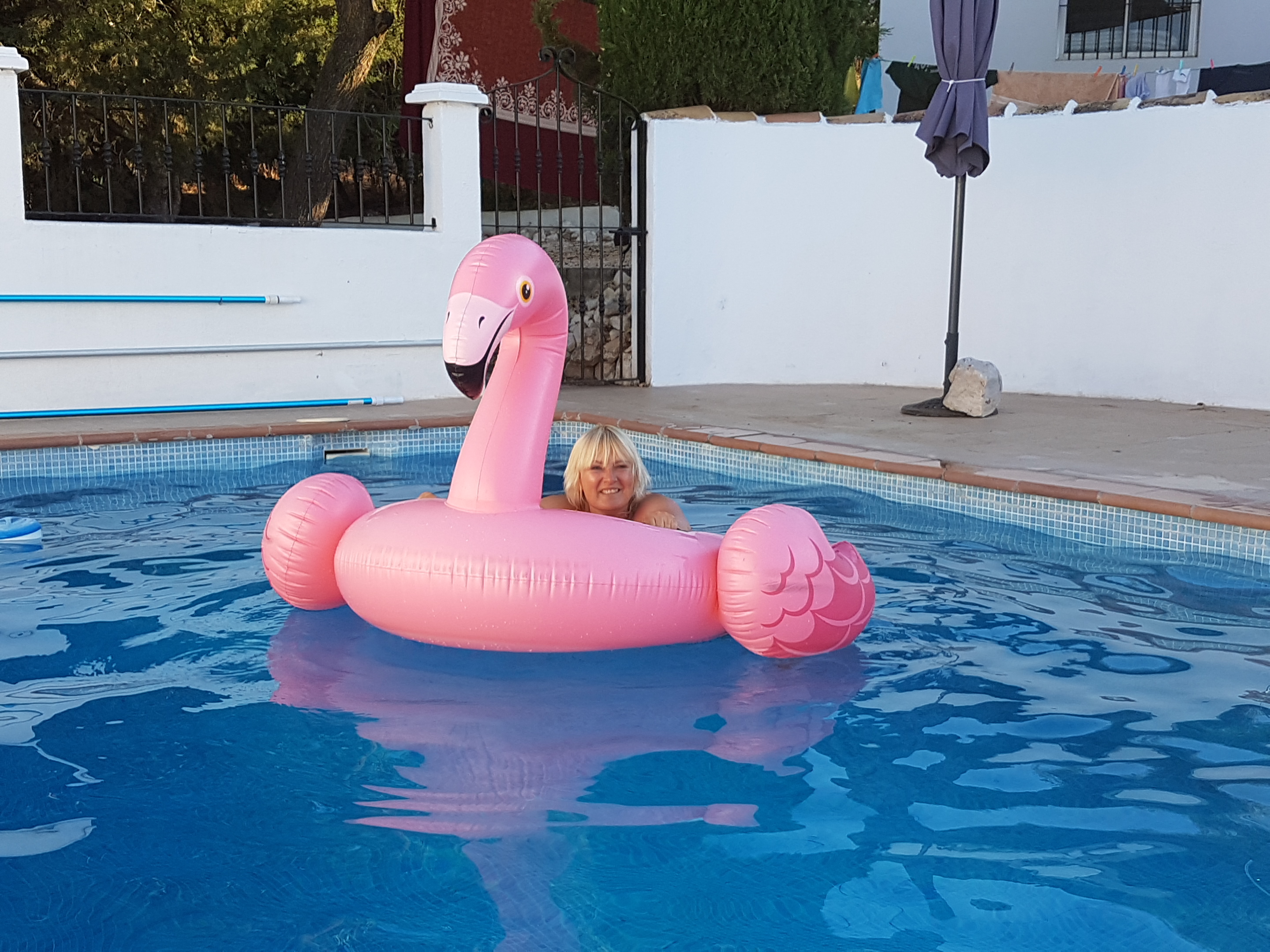 Toen we weer thuis kwamen had Lesley het zwembad weer helemaal top gemaakt en namen we direct een duik. De hele middag hebben we lekker in het schone zwembad gezwommen.
