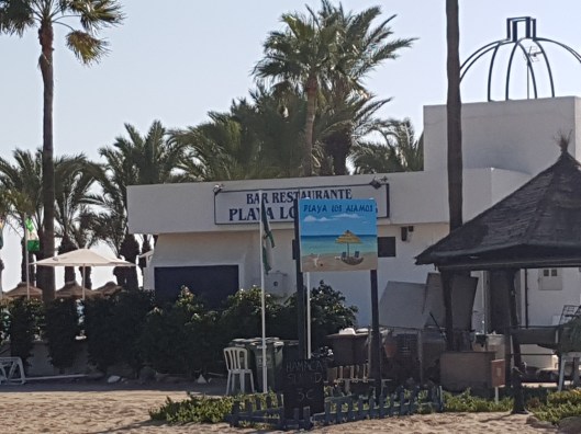 Daarna lekker lunchen aan het strand van Playa los Alamos wat op een steenworp afstand ligt van het shopping gedeelte Plaza Major, ondanks het lekkere weer was er niet veel open meer op dit strand.