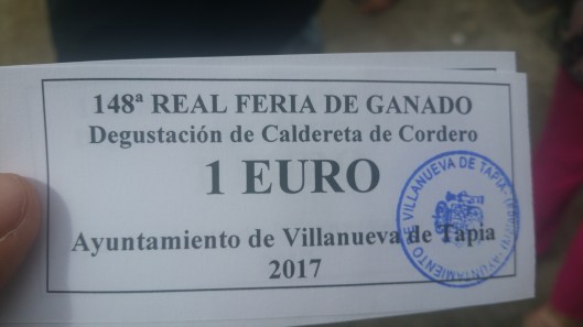Iedereen stond in de rij. Dus wij dachten dat willen wij ook meemaken. Na een uur in de rij te hebben gestaan kwamen we bij een punt aan waar we een bonnetje moesten kopen voor de maaltijd, voor slechts voor €1 kon je een bakje krijgen met vlees en stokbrood. De biertap die ernaast stond was kapot gegaan. (Zou dat de reden zijn dat Spanjaarden zelf vaak graag uit een flesje drinken?) We gingen toch maar even googelen wat het allemaal betekende wat er op het bonnetje stond. Oh jee een stoofpotje van lamsvlees. Laten we allebei nu niet van lamsvlees houden, haha. Maar we stonden nu zolang in de rij dat we het maar gewoon moesten proberen. Het was een gekakel van jewelste in die rij, iedereen nam de laatste nieuwtjes door. Wel heel grappig, je merkt dat je als Hollander best lang bent vergeleken bij al die kleine Spanjaarden, we keken over iedereen heen.