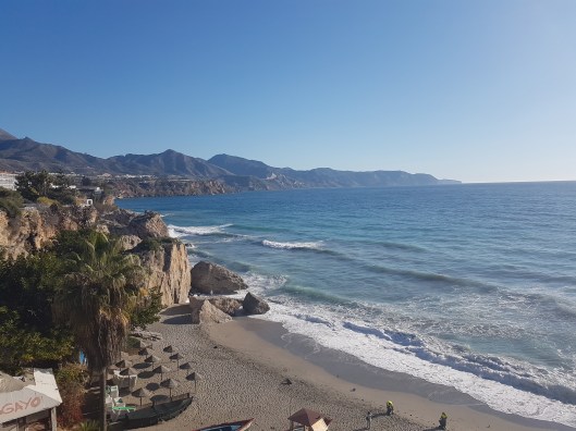 Razend nieuwsgierig was ik, ik had de foto’s gezien en kon niet wachten om de casa in het echt te zien. We hadden afgesproken bij het Burriana strand in Nerja rond lunchtijd. Daarvoor wilde ik met onze gasten nog even Nerja zelf in om het Balcon de Europa te laten zien waar je een prachtig uitzicht hebt op de zee en de rotsen van het strand.