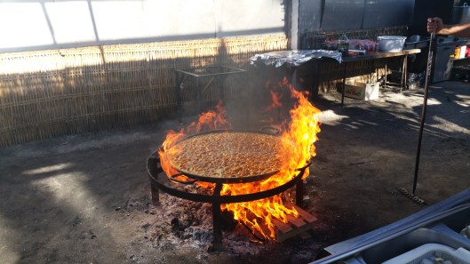 Bij onze favoriete strandtentje Ayo bij Burriana werden de eerste voorbereidingen al getroffen voor de grote pan paella die ze elke dag daar vers maken. Voor slecht € 7.50 kun je daar een bordje krijgen en als je meer trek hebt kun je gratis een tweede bordje halen, echt ongelofelijk.