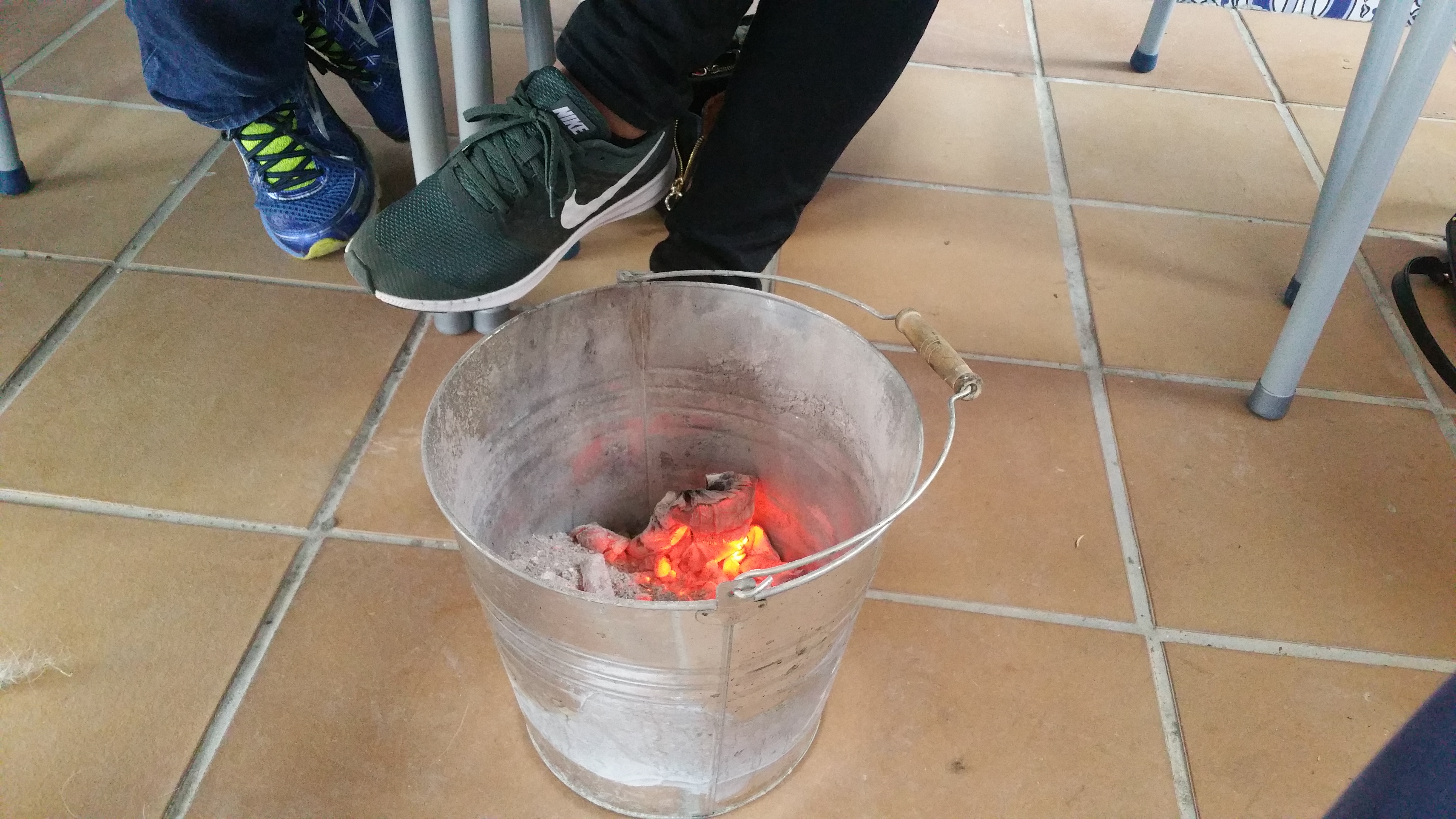Er werd een emmer met kooltjes onder de tafel gezet door de vriendelijke Spaanse ober, die goed duits sprak, om warme voetjes te hebben.