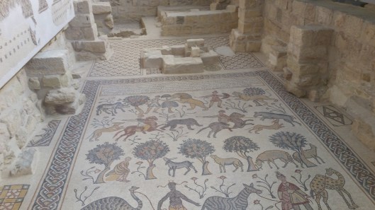 Komt natuurlijk ook omdat deze water krijgt en de andere olijfbomen moeten het doen met regenwater. In het daarbij gelegen kerkje zie je meerdere mozïek vloeren.