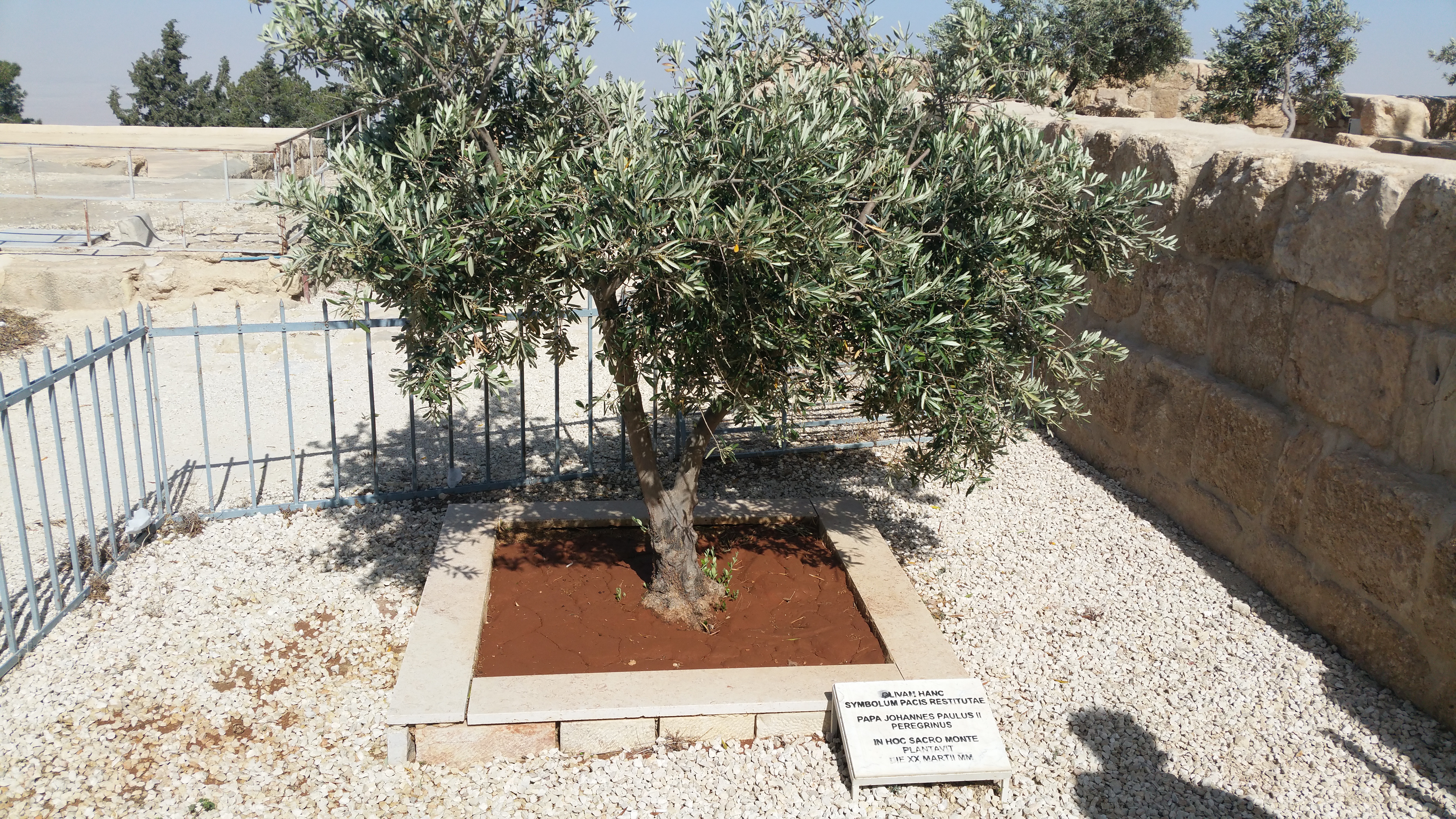 Men zegt dat Moses daar vlakbij begraven ligt. Zijn graf is echter nooit gevonden. De paus heeft er een olijfboom geplant en deze doet het super goed.