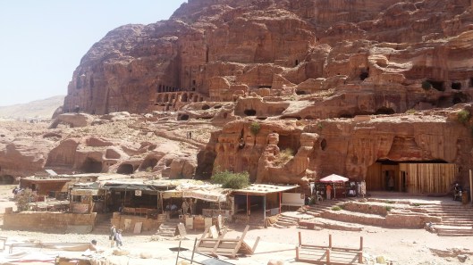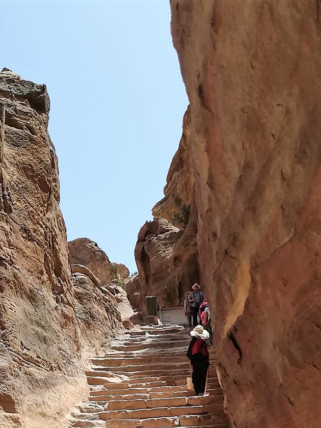 Heel fijn dat we maar een kort stukje naar de ingang van de verborgen stad Petra moesten lopen. Zeker nu ik weet hoeveel stapjes we verder nog gezet hebben tot het einde van de dag, ik had er 20 km opzitten.