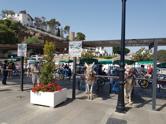 Ten opzichte van ons vorige bezoek was er wel wat verbeterd voor de ezeltjes, nu hadden ze een afdakje en ze werden koel gehouden met water, maar het blijft een beetje dubieus of ze echt goed behandeld worden. Ik zeg geen ritje maken want deze ezeltjes horen niet als taxi gebruikt te worden. Maar verder is het een gezellig dorpje met kleine winkeltjes en veel restaurantjes. Leuk om doorheen te lopen en gezellig een terrasje te pakken. Je hebt er een wijdsuitzicht omdat het hoog in de bergen ligt en je kijkt zo van bovenaf naar de kustlijn.