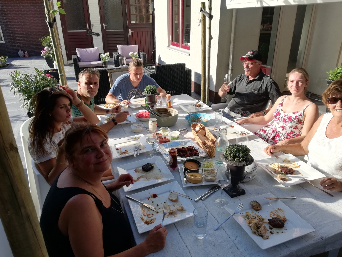 Met met nieuwe fiets heb ik al diverse leuke uitstapjes gemaakt, toen onze vrienden uit Friesland hier waren begonnen we in onze tuin met een hightea daarna een stukje fietsen door de weilanden en we hebben ook nog een rondleiding en proeverij gekregen bij een lokale bierbrouwerij met afsluitend nog een lekkere bbq in onze tuin.