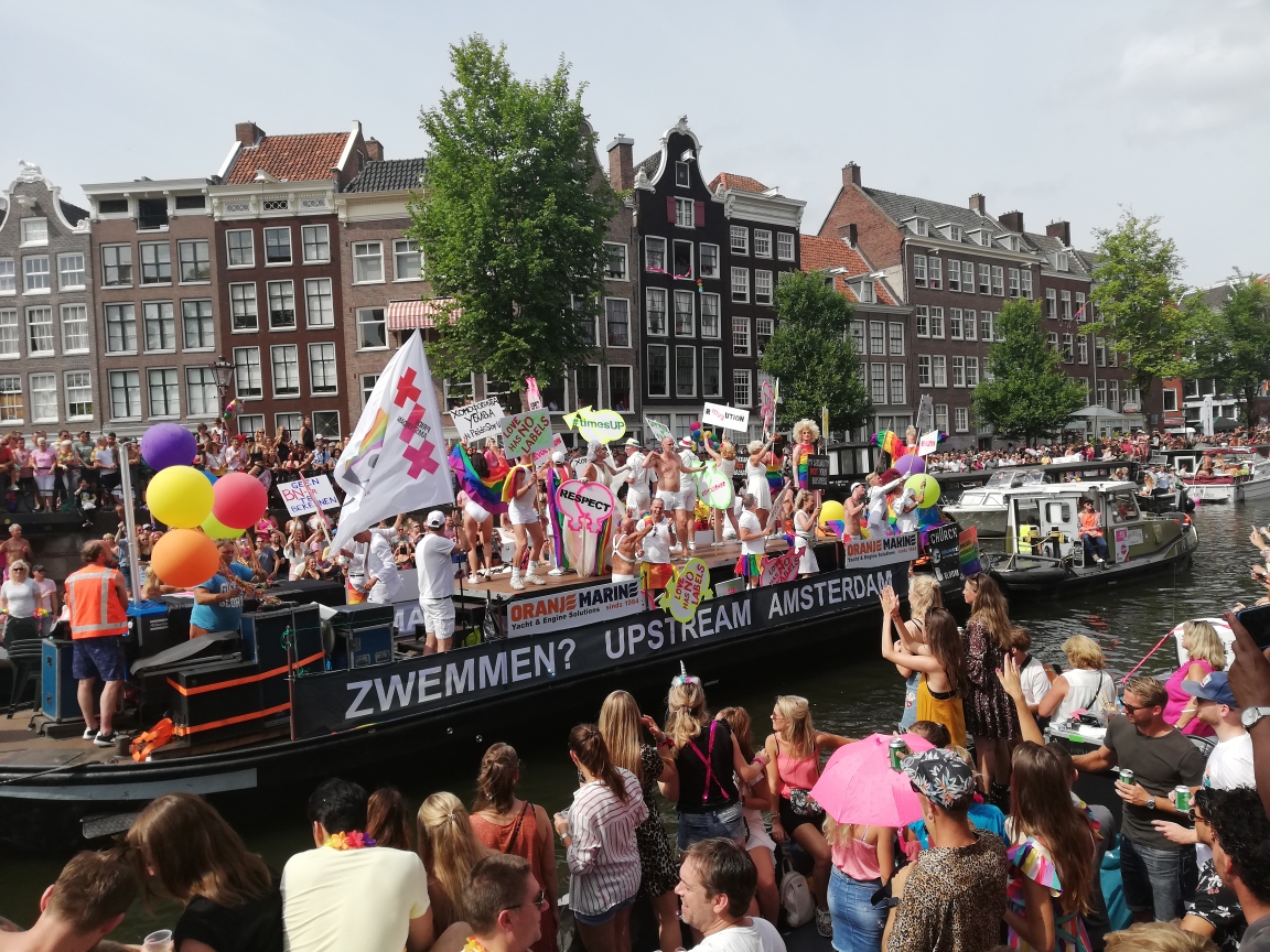 In Amsterdam is er deze zomer ook weer het nodige te beleven, de gay pride was weer oer gezellig. Lekker met een kussentje langs de kade zitten, eigen wijn en eten mee.