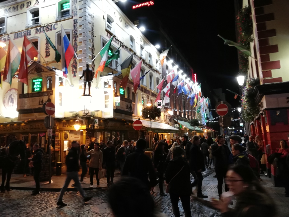 We wandelden ook door een buurt met parlements gebouwen, duidelijk de sjieke buurt, bij Merrion square zagen we een het standbeeld van de schrijver/dichter van Ierse komaf Oscar Wilde daarna liepen we weer terug naar Temple bar district waar het feestgedruis reeds vroeg begonnen was, het was namelijk zaterdag en dan is er topdrukte, ook veel fans van U2 want zij speelden net na dit weekend een thuiswedstrijd in Dublin. (Had ik dat maar van te voren geweten)