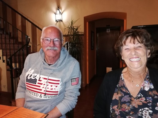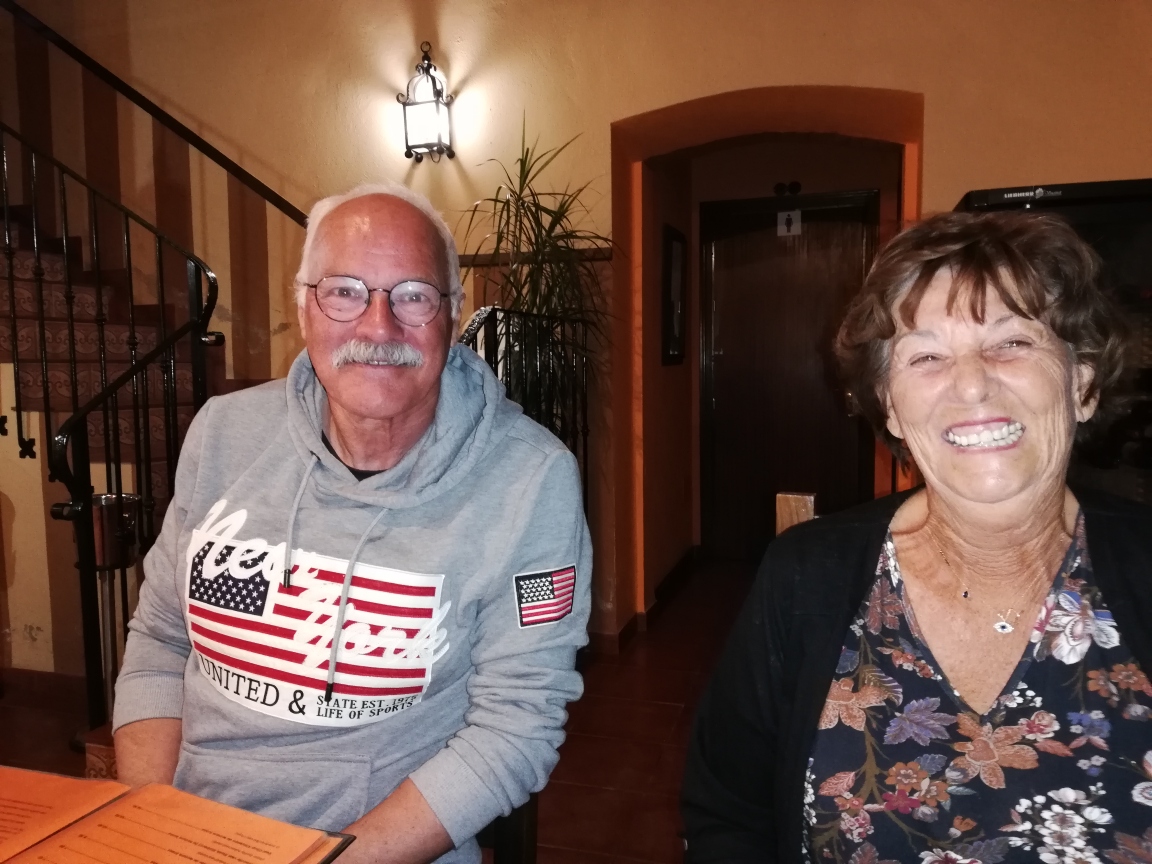 Ik had een late middag vlucht op donderdag 3 januari en kwam half 8 aan in Malaga. Daar stonden ze hoor lachend met hun bruine koppies op me te wachten. Mijn broer komt overmorgen. We reden direct door naar restaurant het Stationnetje in Salinas. De vriendelijke eigenaar vindt het altijd fijn ons weer te zien en we kregen brood met paté en olijfjes van het huis en na het eten kregen we een lekker drankje van het huis. Voor mijn ouders was dit al het zoveelste bezoekje deze vakantie, ik denk dat dit restaurant op het moment tot hun favoriete bekroond is.