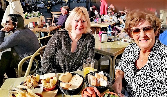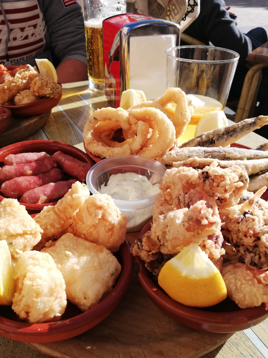 Maar er stond ons nog heel wat te wachten deze dag op de zesde januari. Na de nacht en daarna rustig wakker worden gingen we rond 1 uur een drankje met hapje doen op het zonnige terras bij Manolo en later ook nog bij het stationnetje, een mini tapas tour.