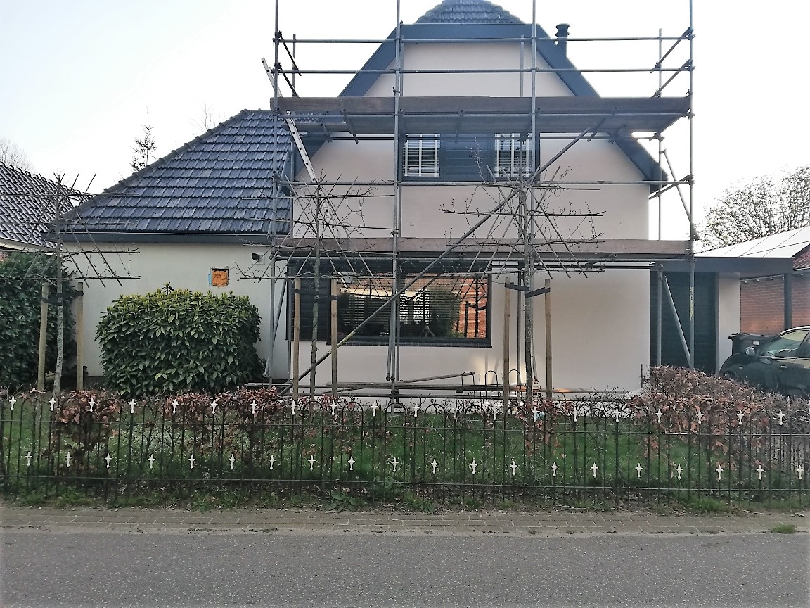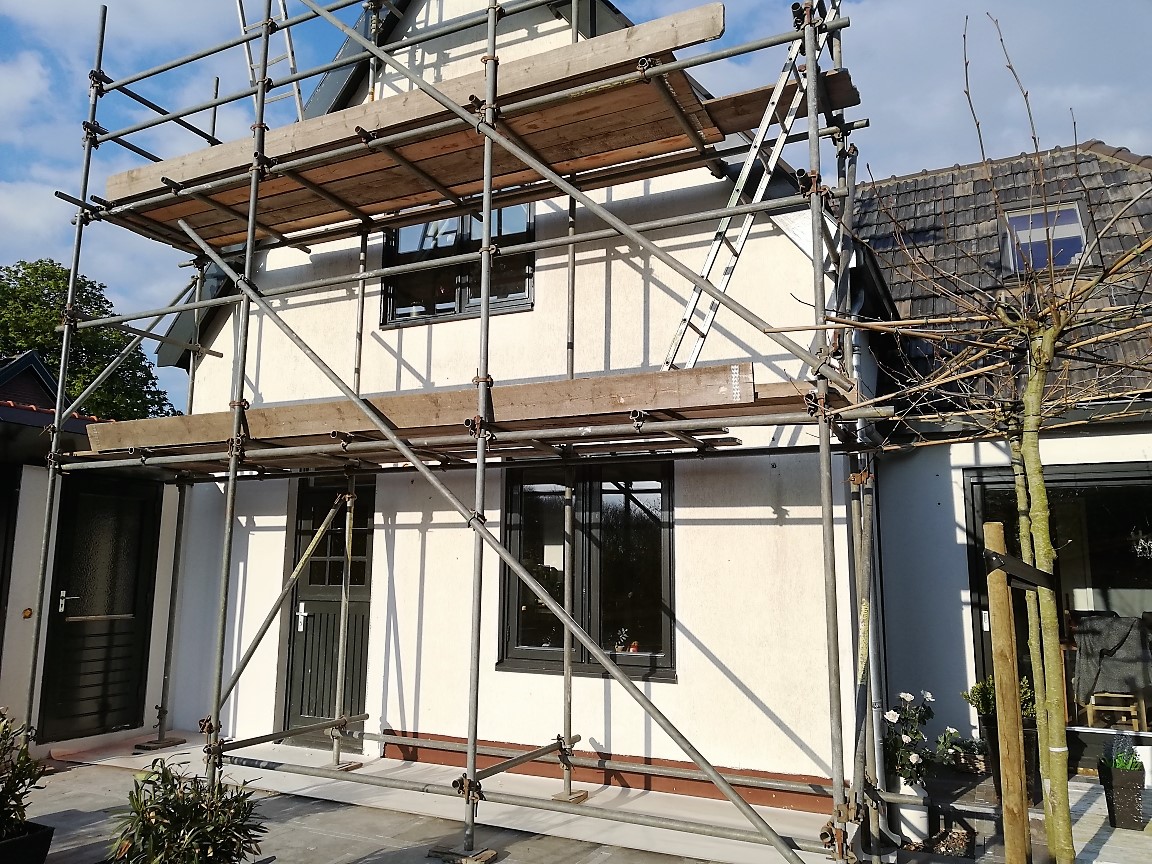 Oh wat fijn gaat het nu eindelijk gebeuren. De steigers staan voor en achter.
