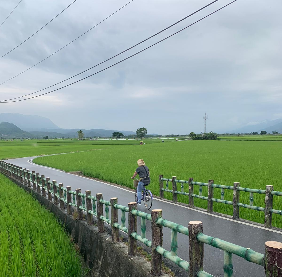 De tweede stop was in Chishang bij de rijstvelden, we konden daar fietsen huren of een fiets karretje een beetje toeristisch was het wel maar wel alleen maar met Aziatische mensen.