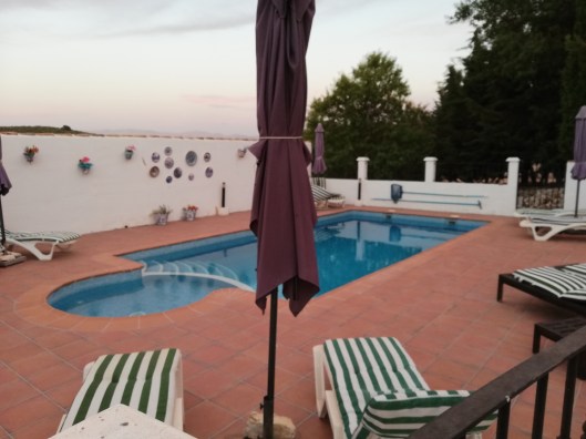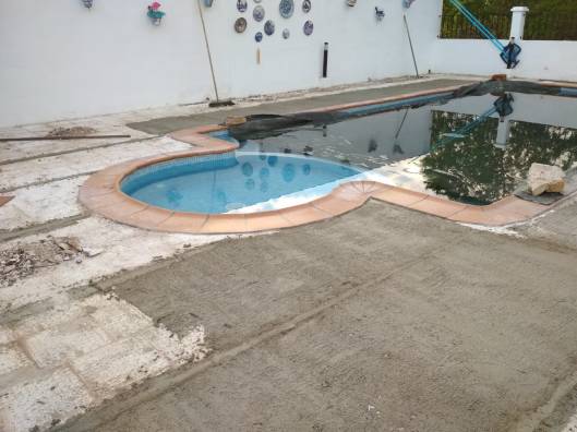 Ik keek uit naar deze periode in Spanje omdat onze klusjesman druk had lopen hakken om de oude tegels, die schots en scheef lagen bij het zwembad, eruit te krijgen. Een behoorlijke investering maar een nieuw terras was echt nodig. Vanaf een foto zal er niet zoveel verschil te zien zijn omdat we de zelfde kleur tegels weer genomen hebben, maar als je er met je neus op staat is het verschil groot. Ook het schoonmaken van de tegels zal een stuk makkelijker gaan vanwege het profiel.