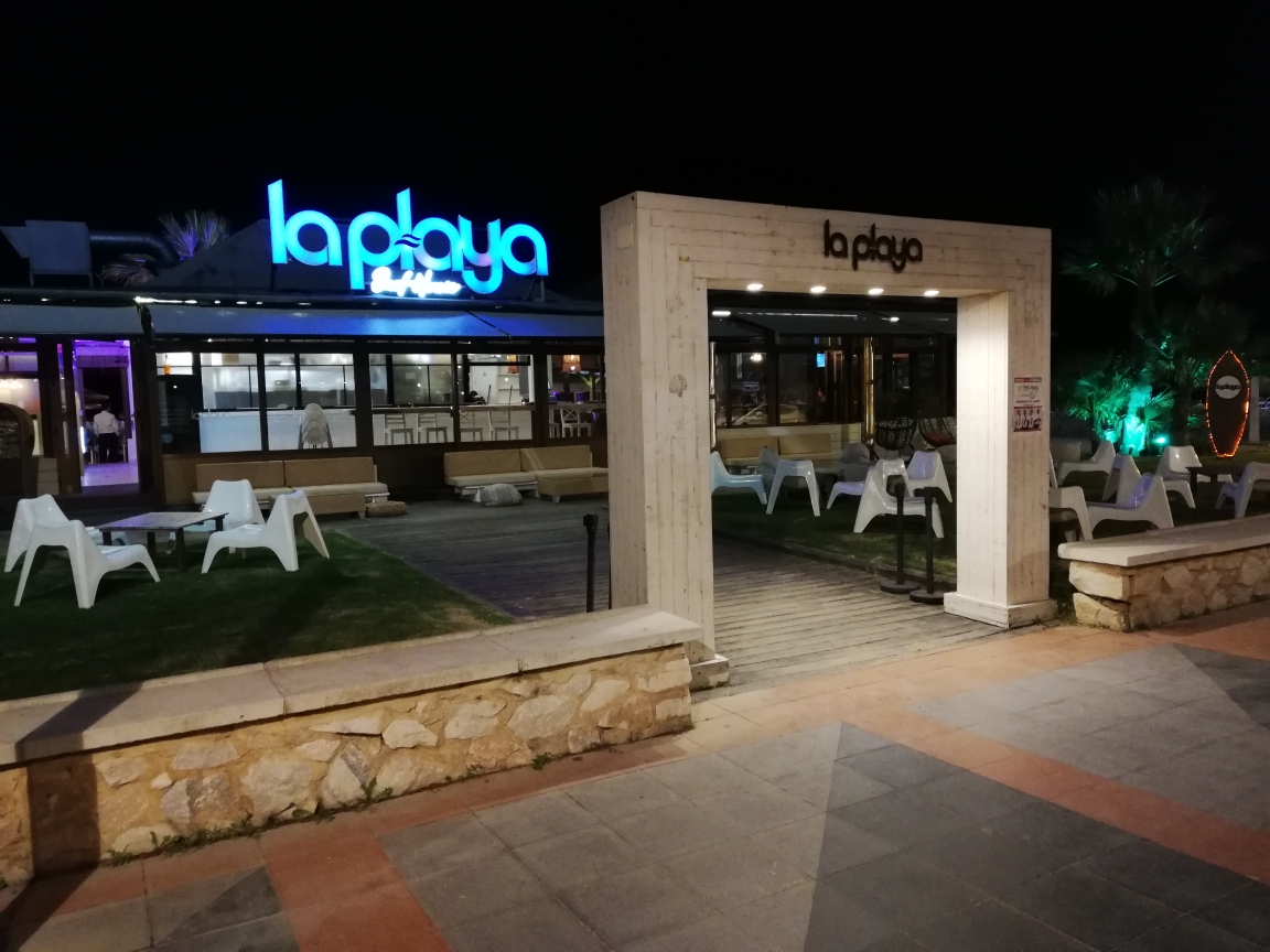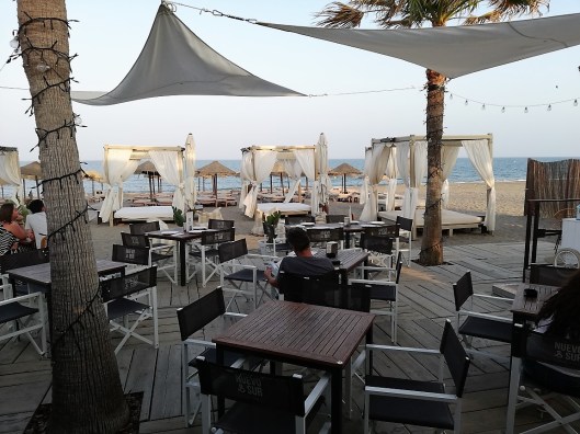 We hebben er heerlijk saté gegeten en na het eten zijn we over het strand gaan wandelen en belanden we bij een andere strandtent La Playa voor een kopje thee en koffie, hier was het wel erg druk, met voornamelijk alleen Spanjaarden.