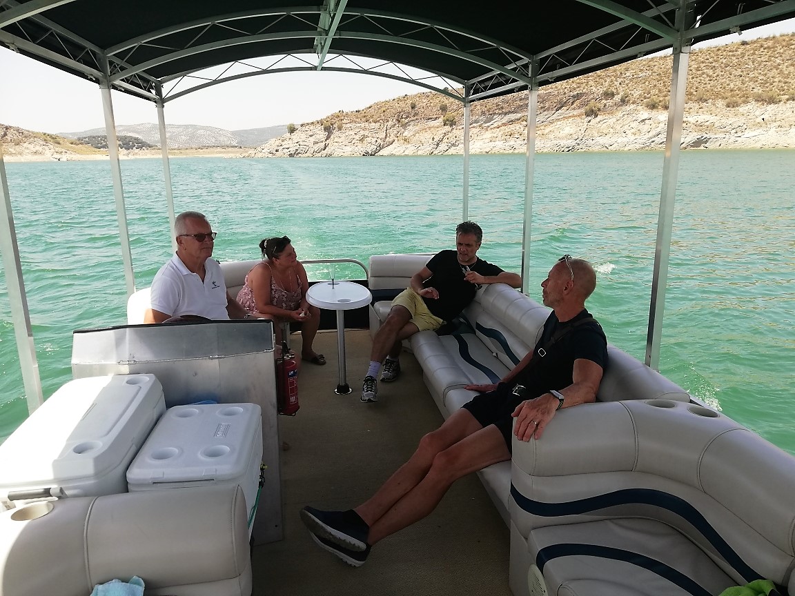 Om 1 uur vertrokken we vanaf de steiger van het meer van Iznajar. Ik was eerst bang dat dit tijdstip te warm zou zijn, maar het was juist heerlijk, er stond een klein windje op het meer en de boot was overdekt.