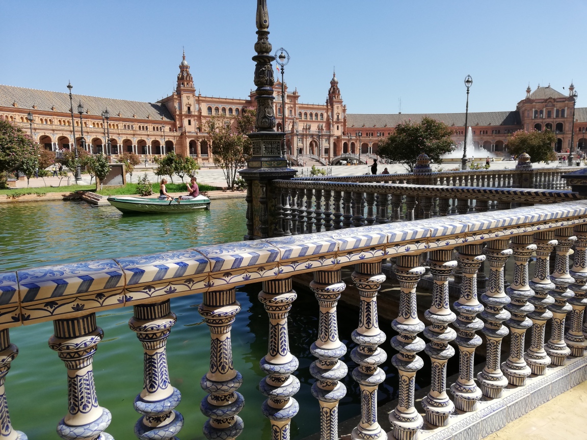Als je in 1 dagje de highlights wil zien is het wel handig als je de stad al een beetje kent. Gelukkig zijn wij er al diverse keren geweest en beschik ik ook over een goed richtingsgevoel. Dus deze dag was ik de gids. We begonnen bij Plaza de España mijn favoriete plein in Sevilla, de gebouwen die rondom het halfronde plein liggen worden nog steeds gebruikt door de overheid.