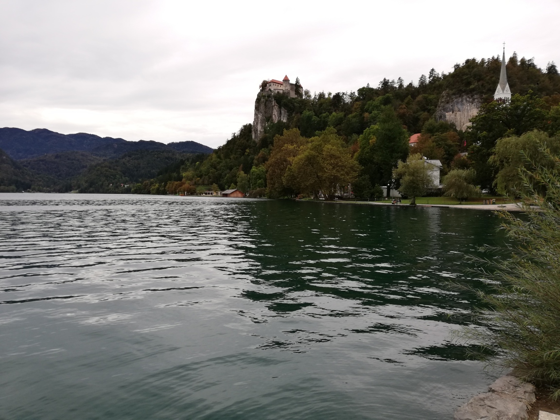 Onze reisgraag dochter had besloten dat we niet alleen naar de stad Ljubljana zouden gaan maar ook het land zelf in zouden gaan. We begonnen in het Noord Westen bij het meer van Bled. Nadat we onze auto hadden opgehaald reden we er in een half uurtje naar toe.