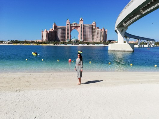 We stopten bij een leuk plekje op een strandje waar je foto’s kunt maken met het luxueuze Atlantis hotel op de achtergrond. Een replica van het hotel op de Bahama’s, waar Cheyenne geweest is 10 jaar geleden met haar Amerikaanse host familie.
