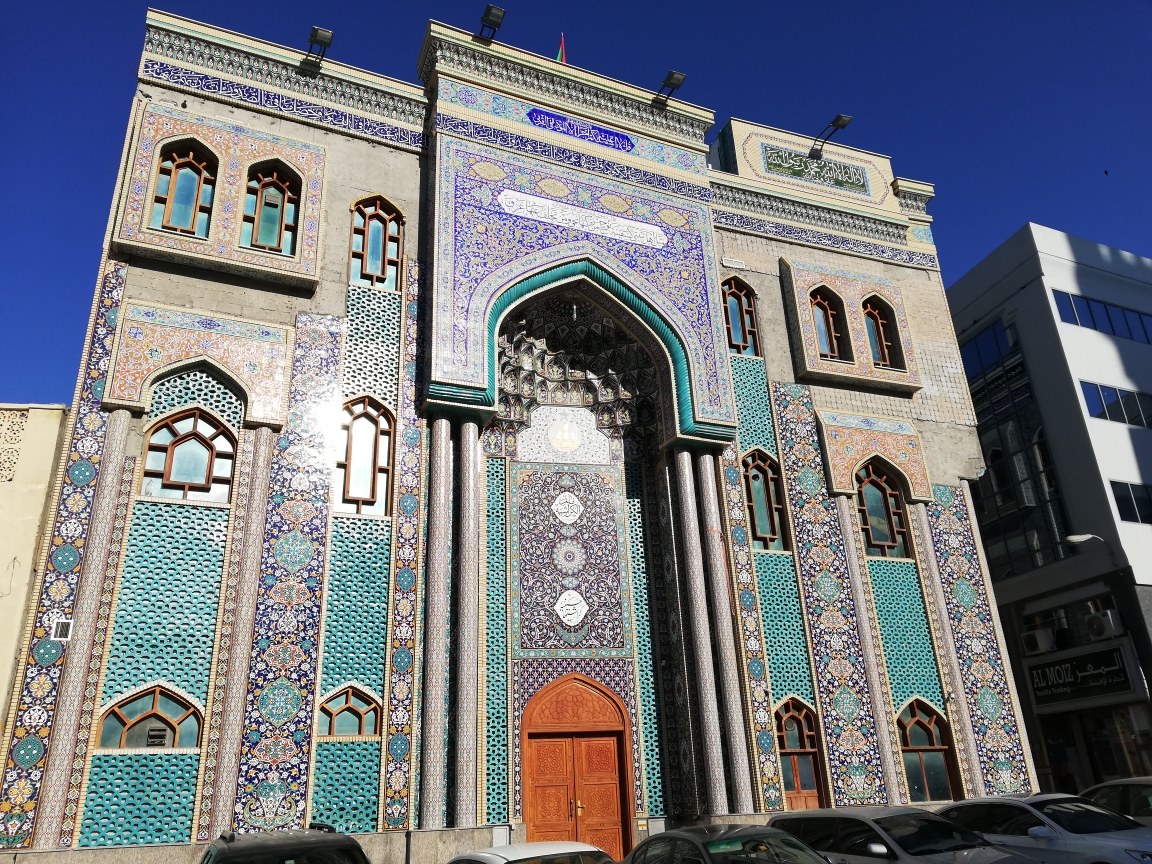 In de oude wijk bastakia vonden we per toeval een Iraanse Moskee, dit is echt een schitterende moskee, afgewerkt met blauwe mozaïeken.
