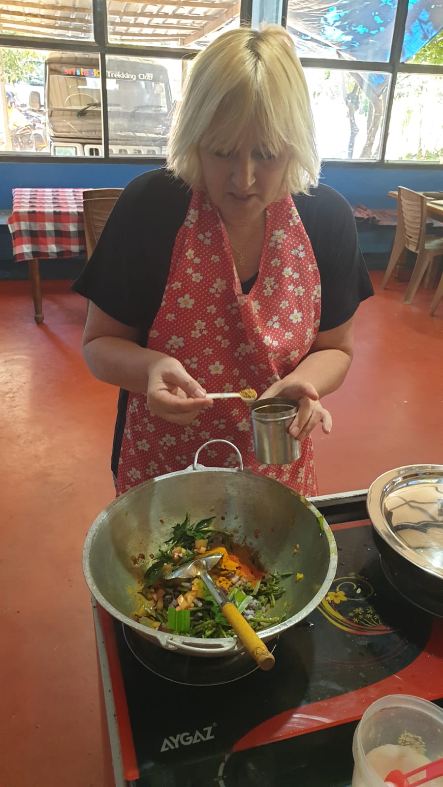 Na de wandeling leek het ons leuk om een kookles te gaan volgen en zelf van de verse groenten een heerlijke curry te gaan maken.
