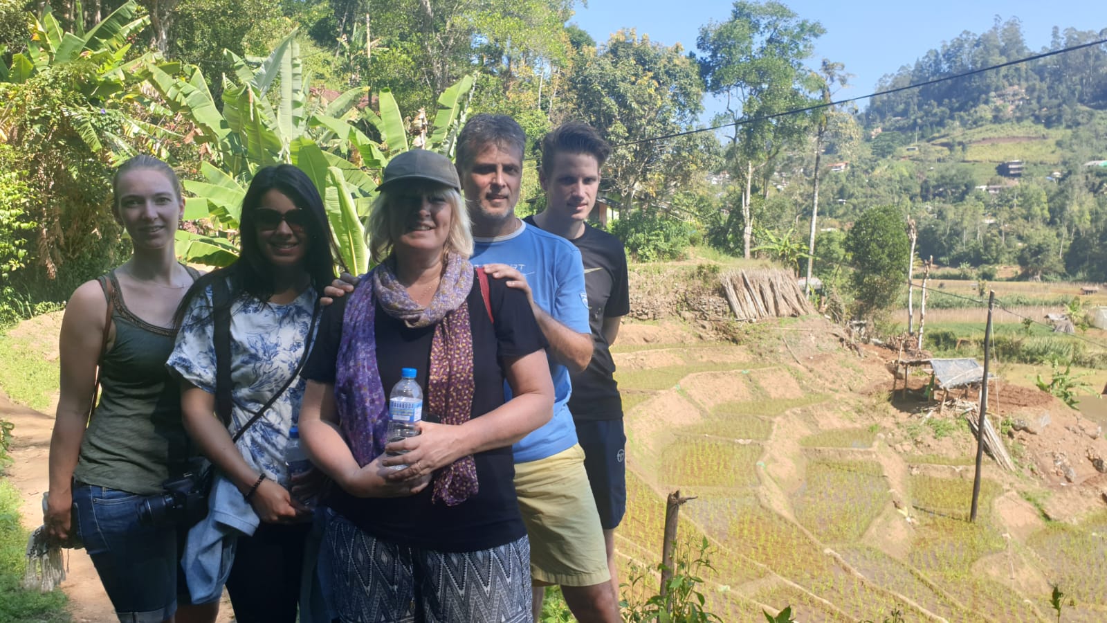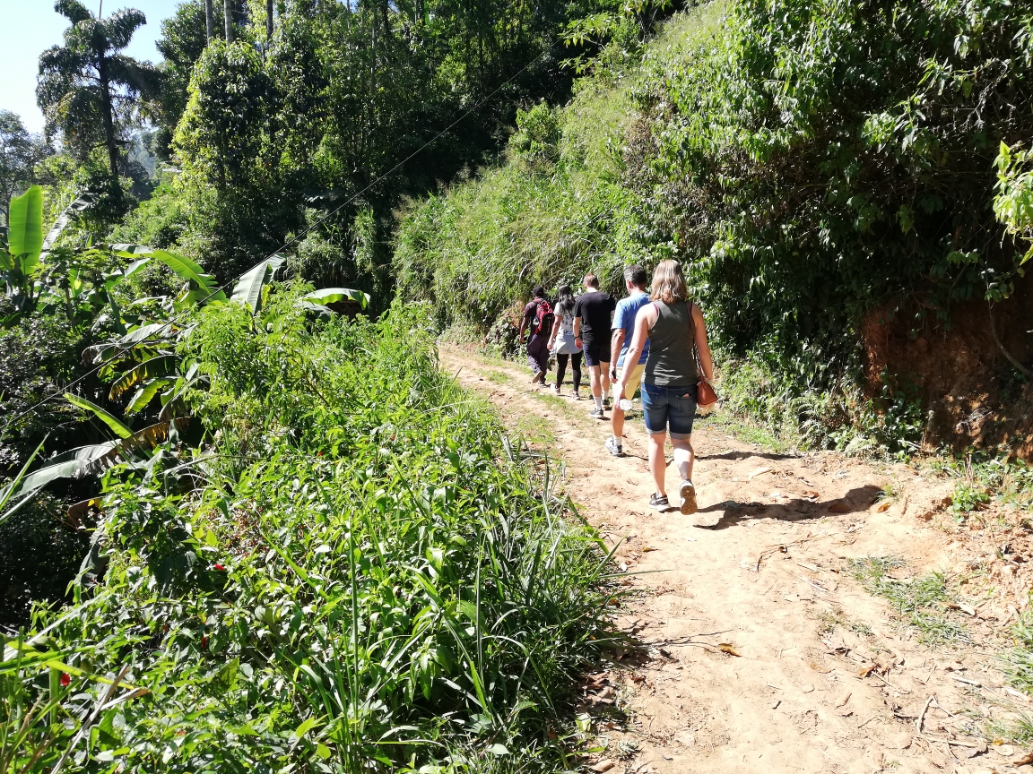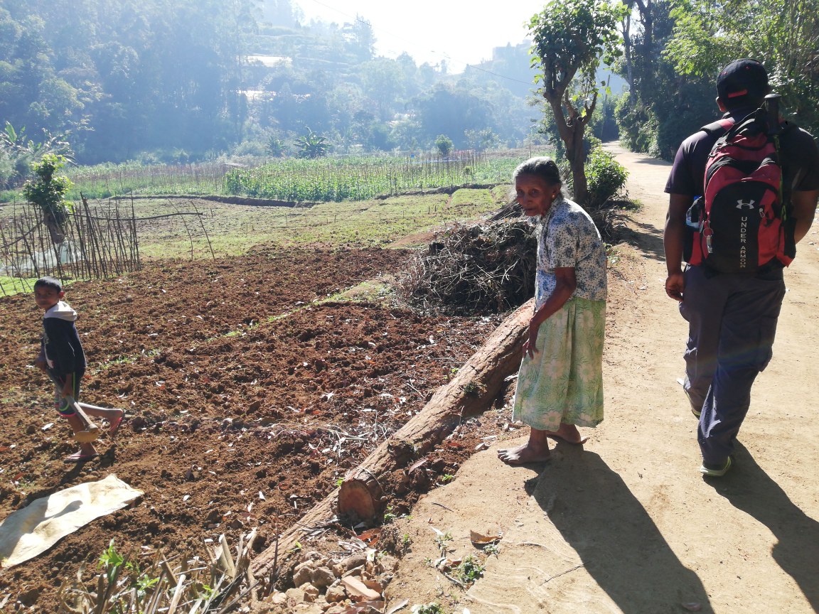 We begonnen in de ochtend met een stevige wandeling van 7 km door het prachtige landschap waar we mensen op het land zagen werken, jong en oud.