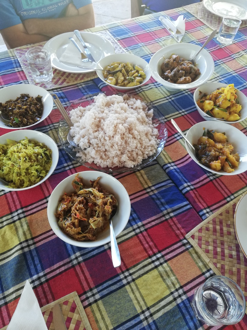 Het belangrijkste gerecht in Sri Lanka is rijst en curry:groentecurries, viscurries, eier, vleescurries maar ook fruitcurries.